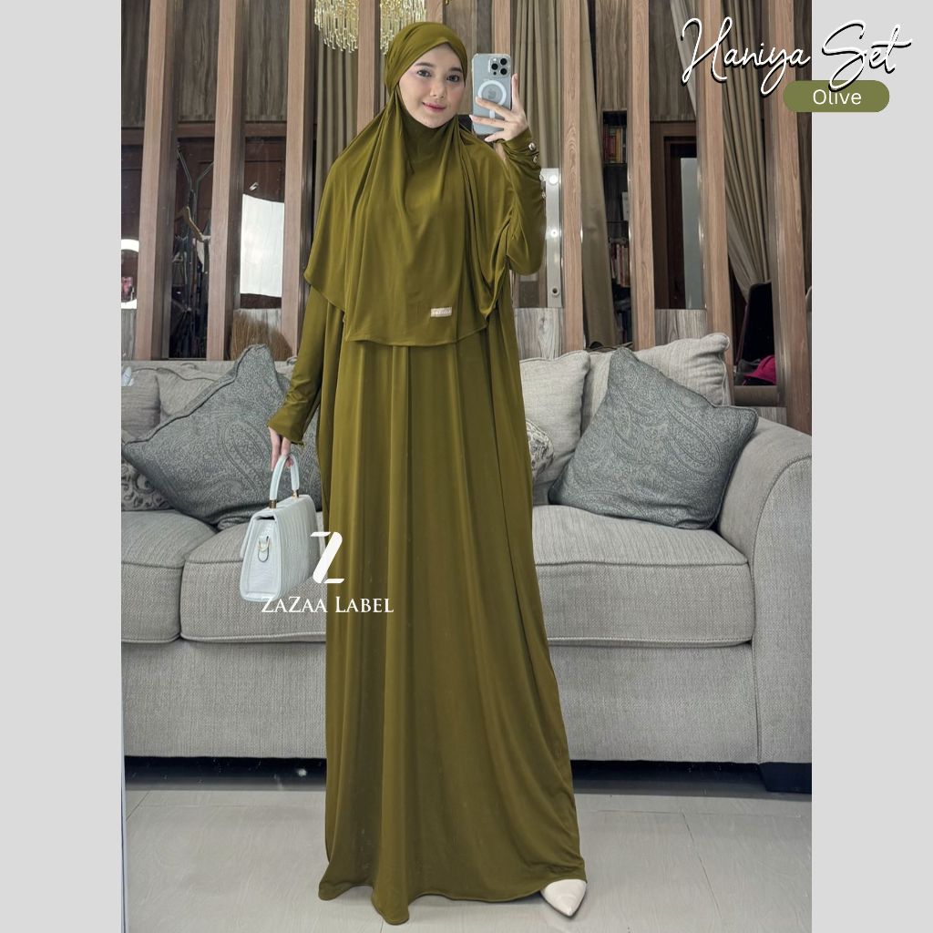 Haniya jersey abaya set hijab batwing casual wanita busui polos manset zipper wudhu friendly include dengan hijab
