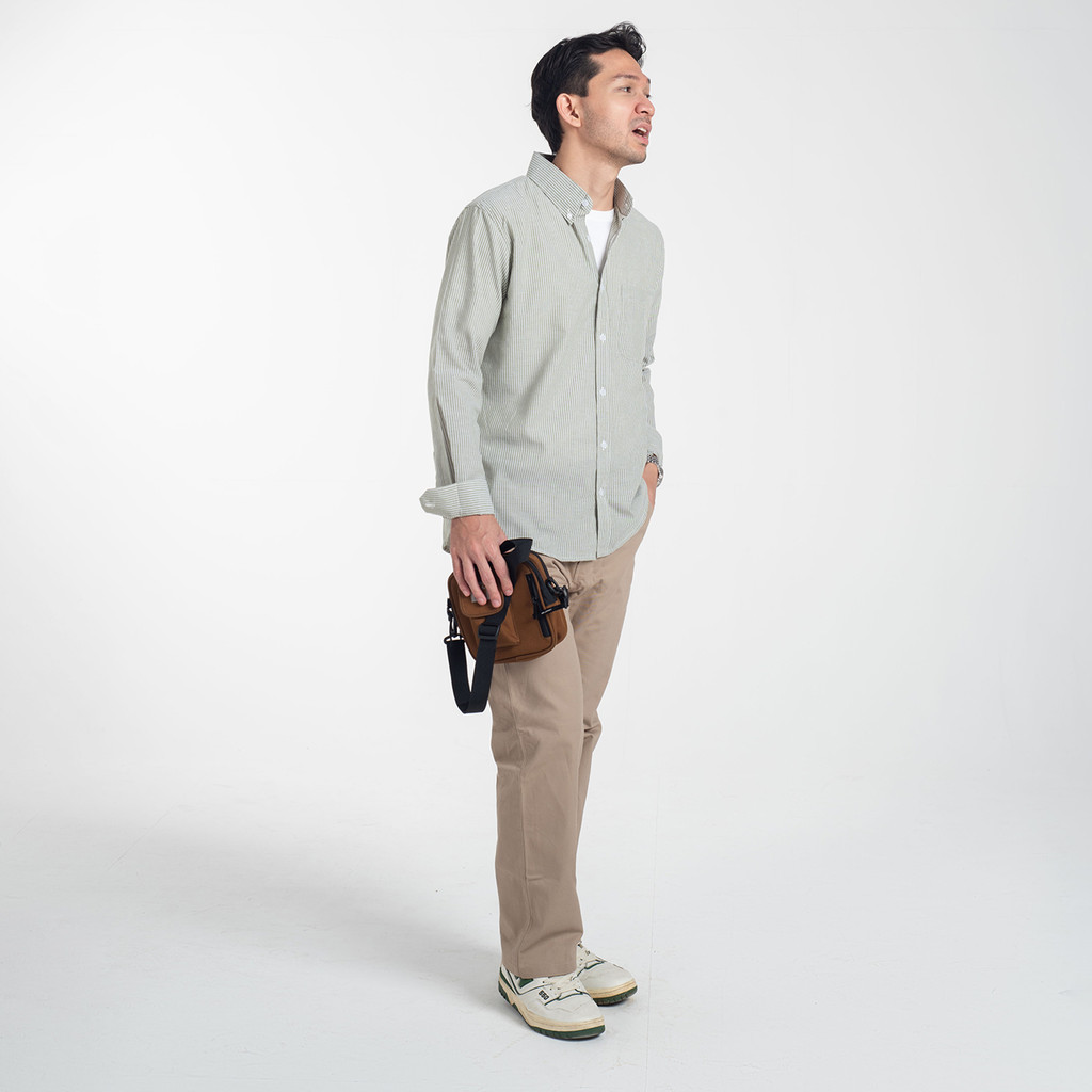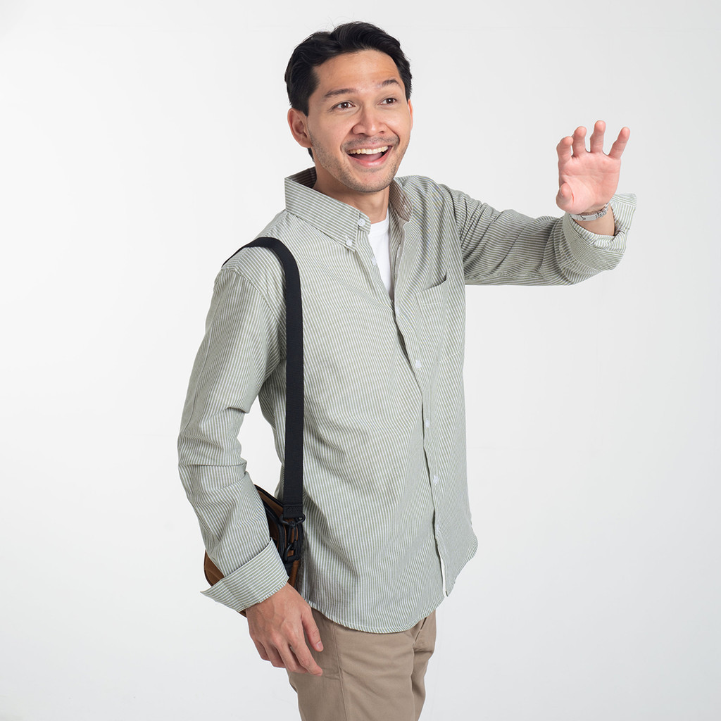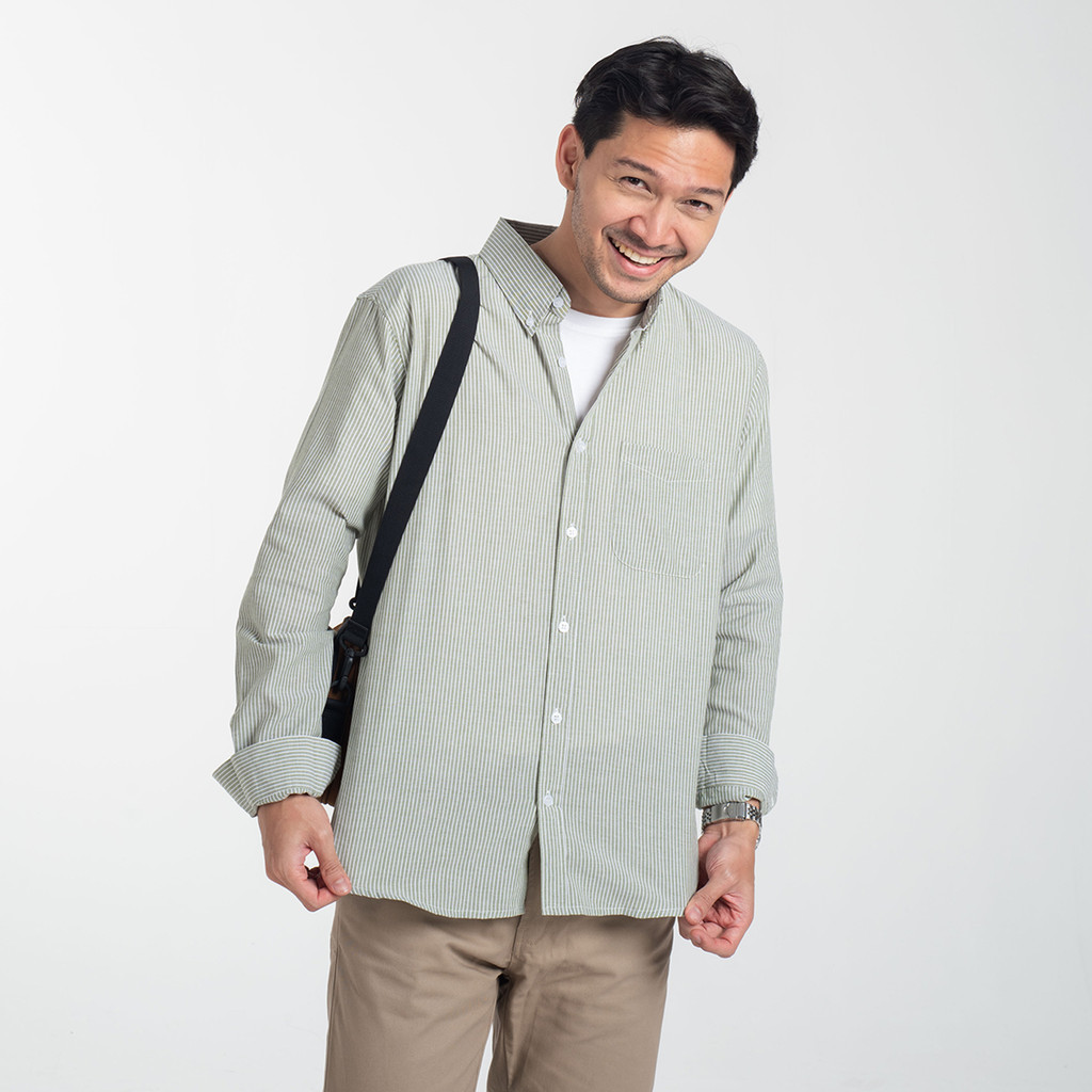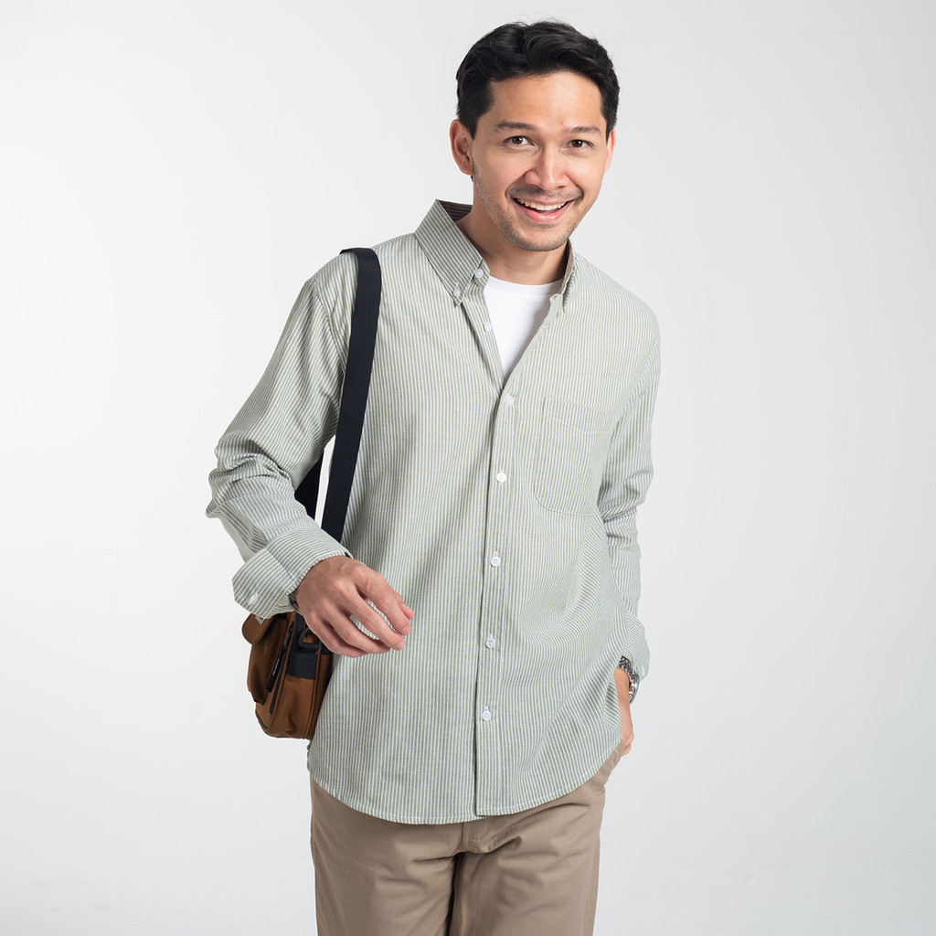 Kemeja Pria Polos Lengan Panjang DYD Pique Formal Kasual Abu-Abu Otaco