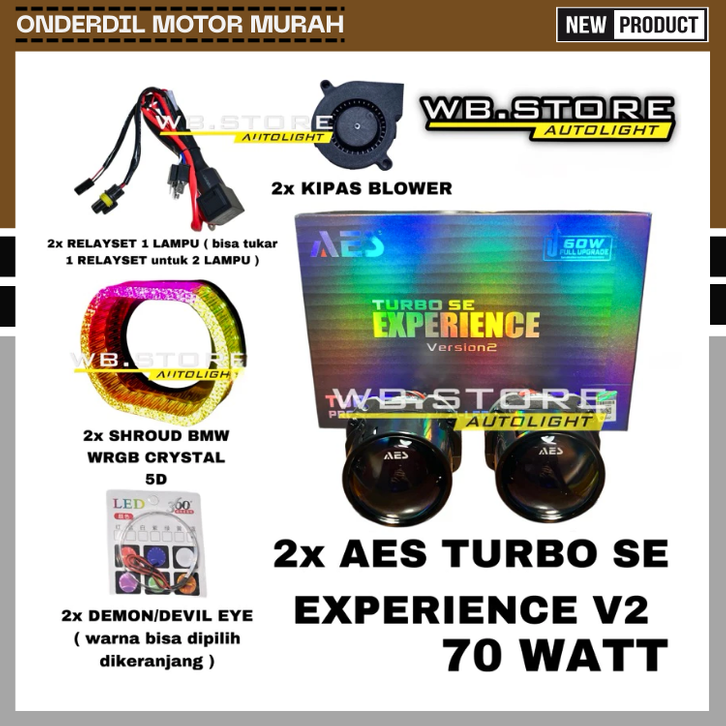 PAKET BILED AES TURBO SE EXPERIENCE 60 WATT ORIGINAL BILED GEN 3 AES PAKETAN SHROUD 2,5 INCHI | BILED COMBO PAKET HEMAT