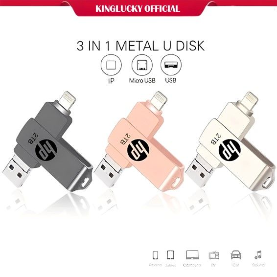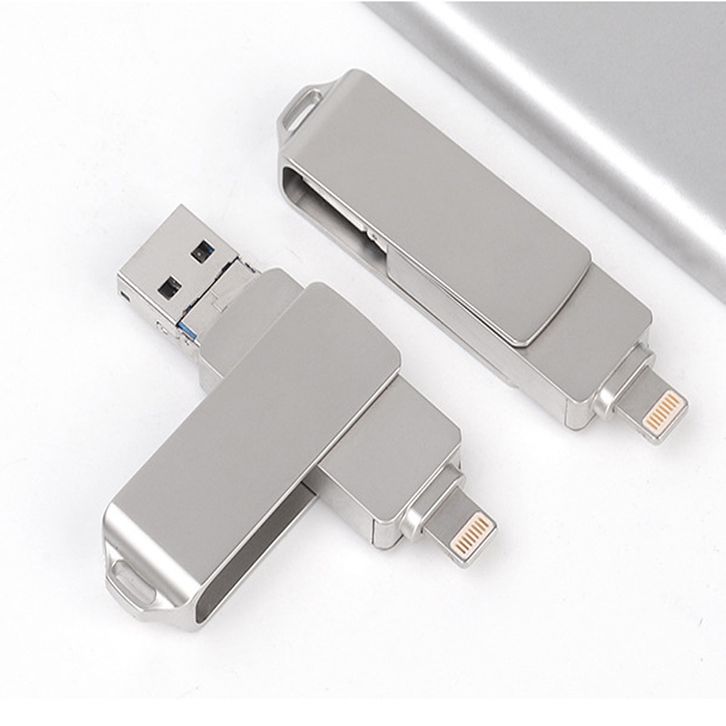 FlashDisk 3 in 1 IOS OTG USB FlashDrive 32GB 64GB 128GB 256GB 1TB Rotation PenDrive for iPhone/Android/PC[ISO+Micro+USB]