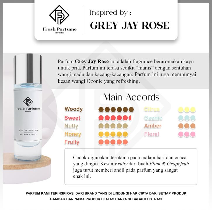 TERLARIS FRESH PARFUME Grey Jay Rose Premium EDP Parfum Pria Cowo Refill Refil Impor Tahan Lama