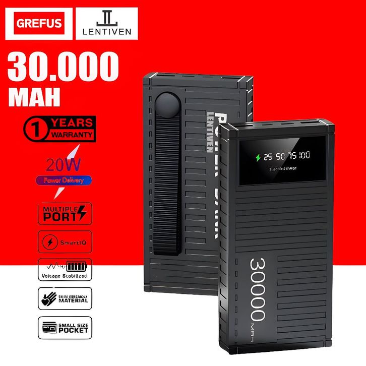GREFUS LENTIVEN PowerBank 30000mAh Fast Charging LED Display Mini with Dual Output Dual Input Portable