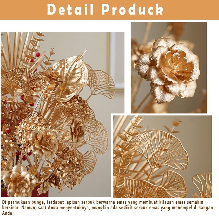 BUNGA HIASAN ARTIFICIAL GOLD FLOW HIASAN MEJA/RUMAH, ATAU FOTO PRODUK PLASTI PALSU DEKORASI