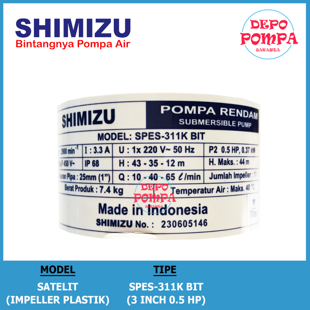 Pompa Air Satelit SHIMIZU 3 INCH 0.5 HP KOMPLIT KABEL BIRU-ECO SERIES