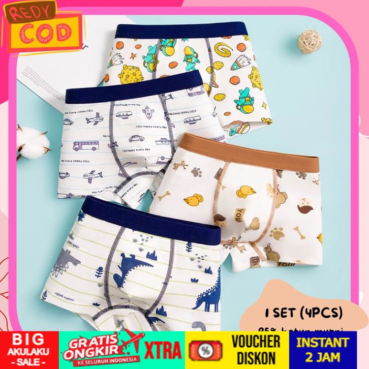 KIKIDOO 4 PCS CD BOXER KATUN ANAKKIKIDOO 4 PCS CD BOXER KATUN ANAK COWOK KIDS P COWOK KIDS PANTIES 1007