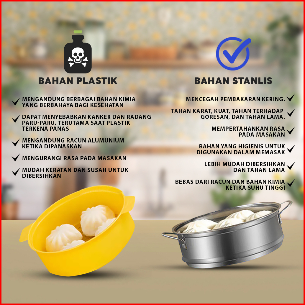 Panci Listrik Elektrik Free Kukusan Serbaguna Stainless Berkualitas Antilengket Portable Multifungsi