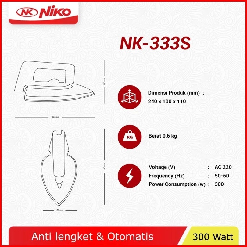Niko Nk333s Setrika Listrik Gosokan Baju Low Watt Otomatis Garansi Resmi