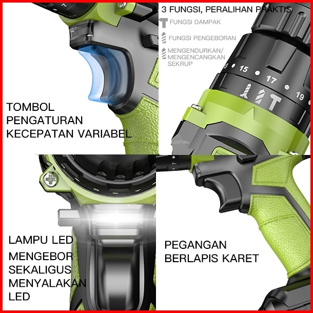 Zper Cuci Gudang Murah Portable Bor Cordless 3 In 1 Impact Mesin Bor Baterai Listrik Multifungsi Tangan Battery Impact D