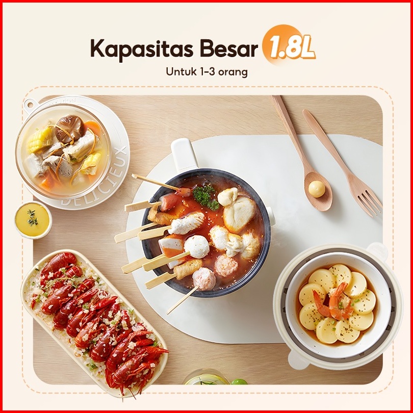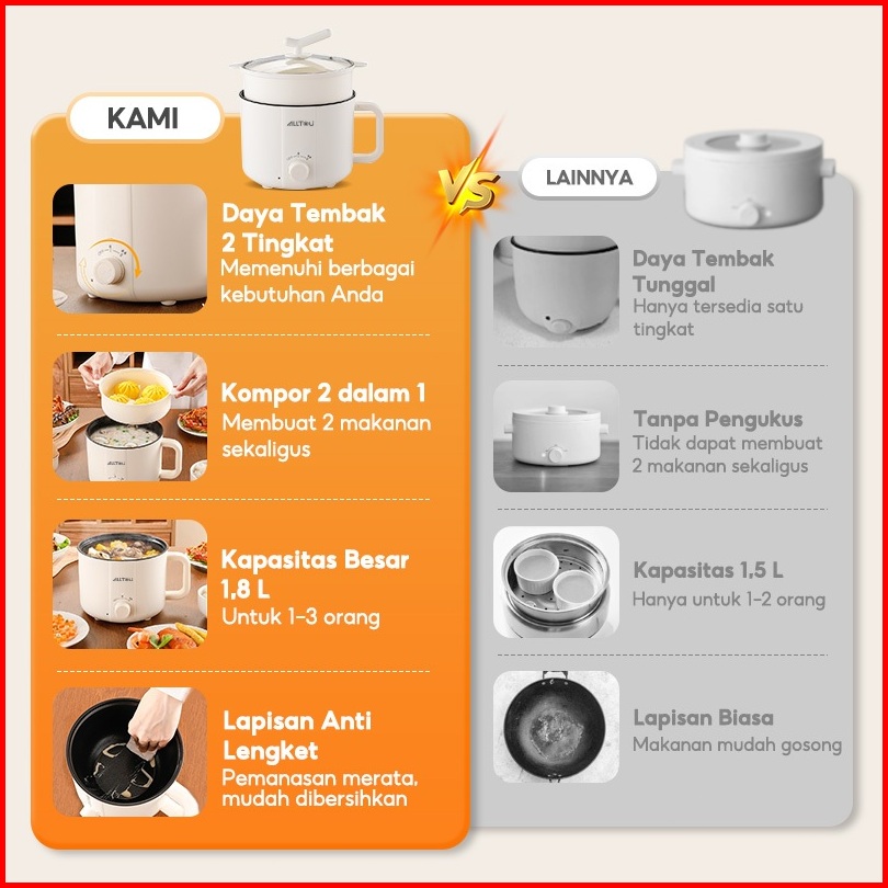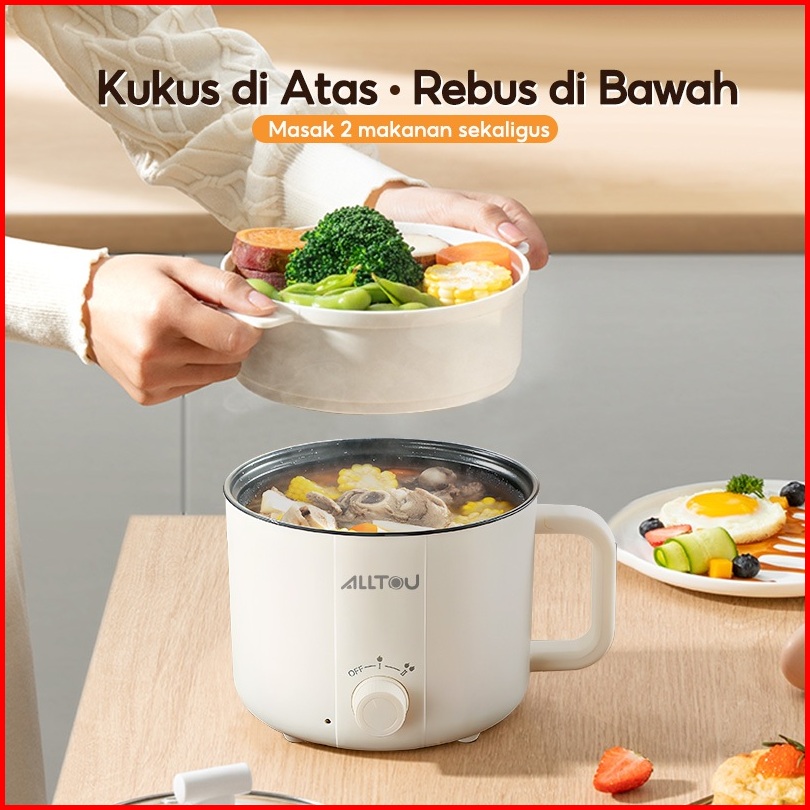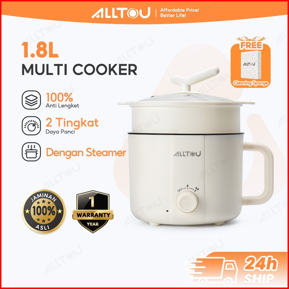 Alltou Panci Listrik Multifungsi 1.8l Cooker Kompor Listrik Pintar Pelajar Panci Listrik Asrama Perjalanan Bisnis