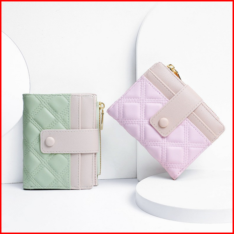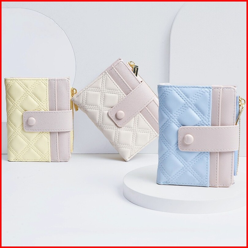 Dompet Wanita Kulit Premium Dompet Lipat Pendek Kecil Macaron Dompet Koin Lucu Dompet Cewek Mini Dompet Cewe Korea Walle