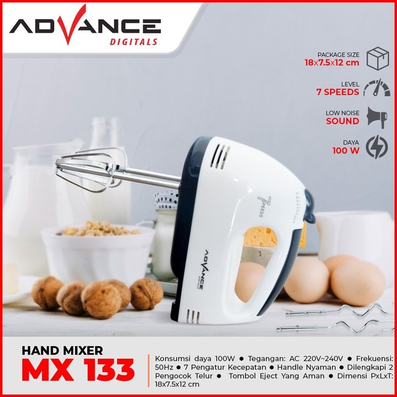 Garansi 1 Tahun Advance Hand Mixer Mx-133 Automatic Mixer Electric Egg Beater Dengan 7 Kecepatan Otomatis