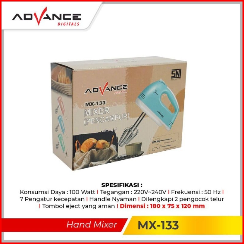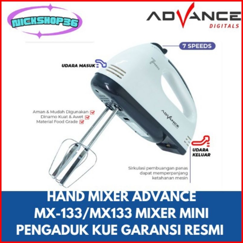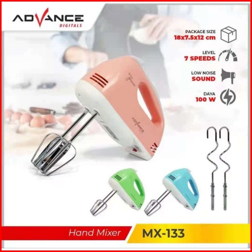 Advance Hand Mixer Mx133 Alat Pengocok Telor Pengaduk Adonan Dengan 7 Kecepatan Otomatis Garansi Resmi Advance 1 Tahun