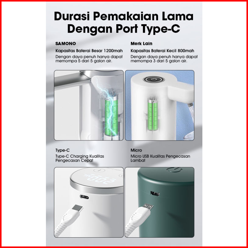 Samono Pompa Galon Portable Usb Rechargeable Touch Screen Gallon Dispenser Water Pump Food Grade Sw-cq02s White