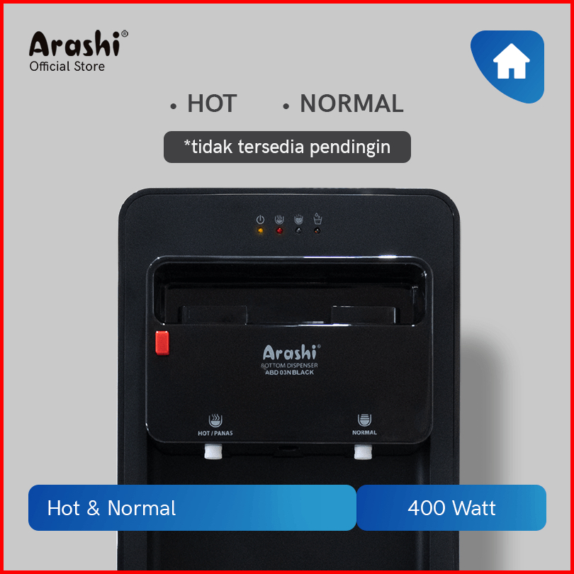 Arashi Bottom Dispenser Abd 03n Hot Normal Galon Bawah Black
