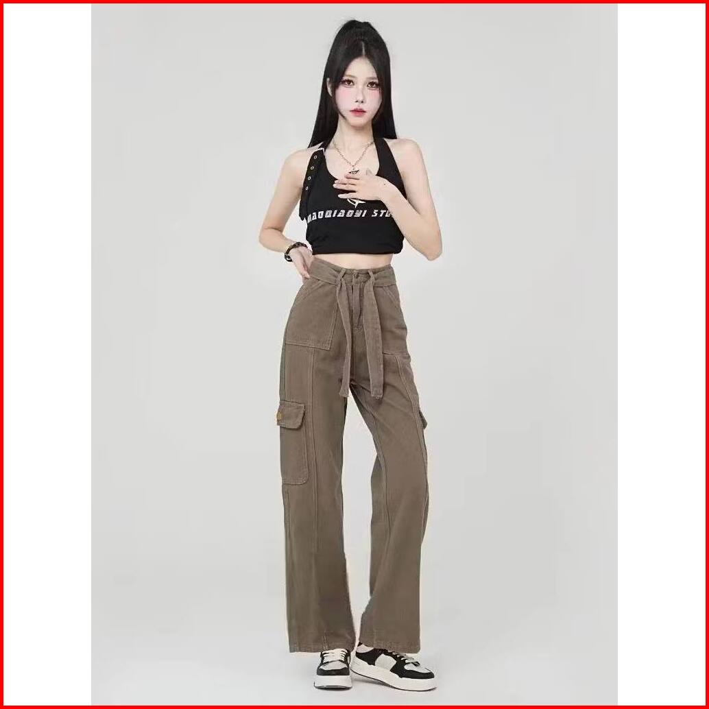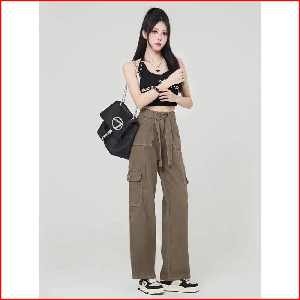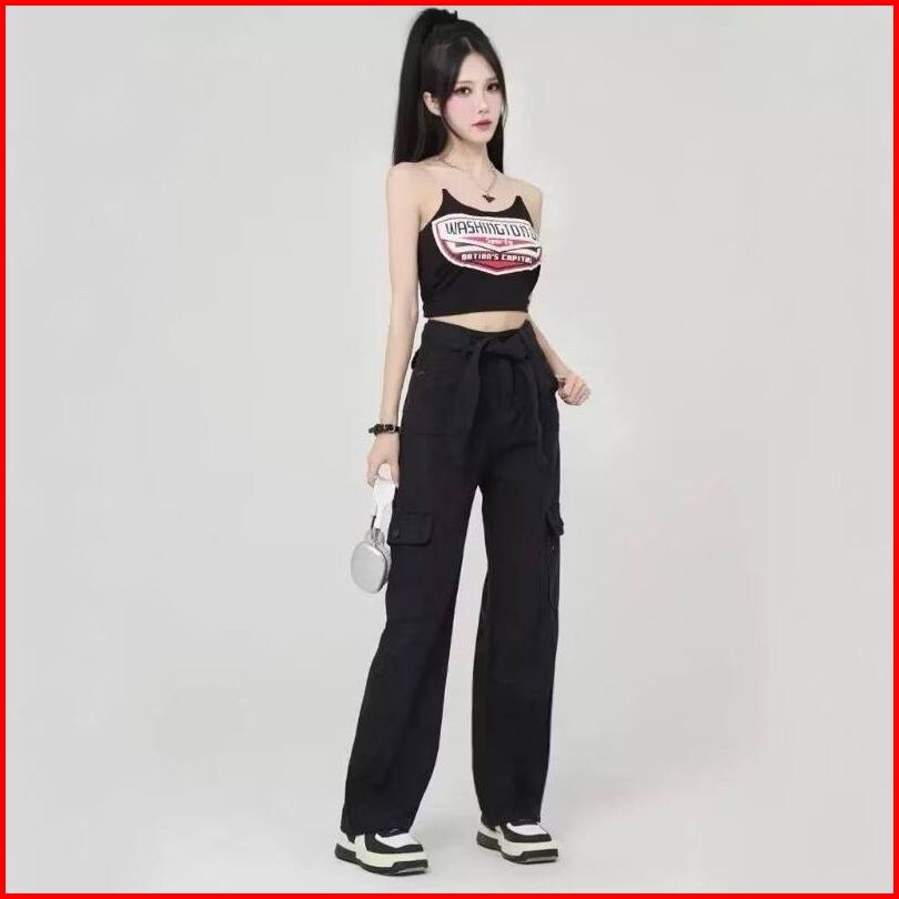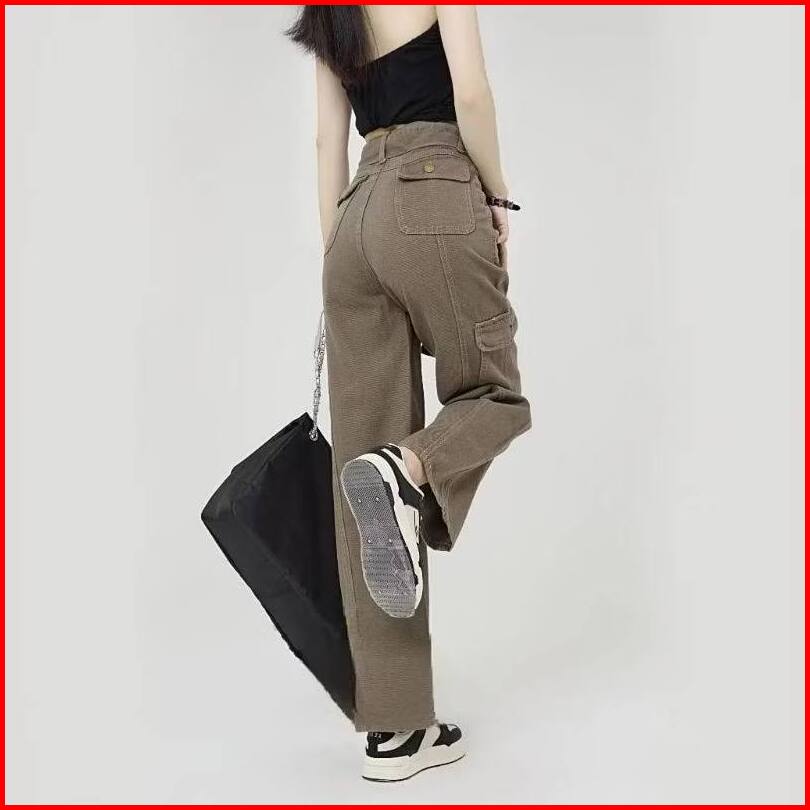 Celana Jeans Cargo Wanita Highwaist Auto Jenjang Celana Cargo Kekinian Korean Style