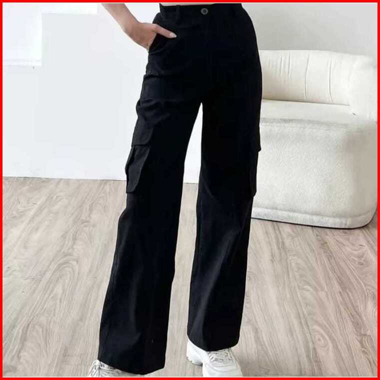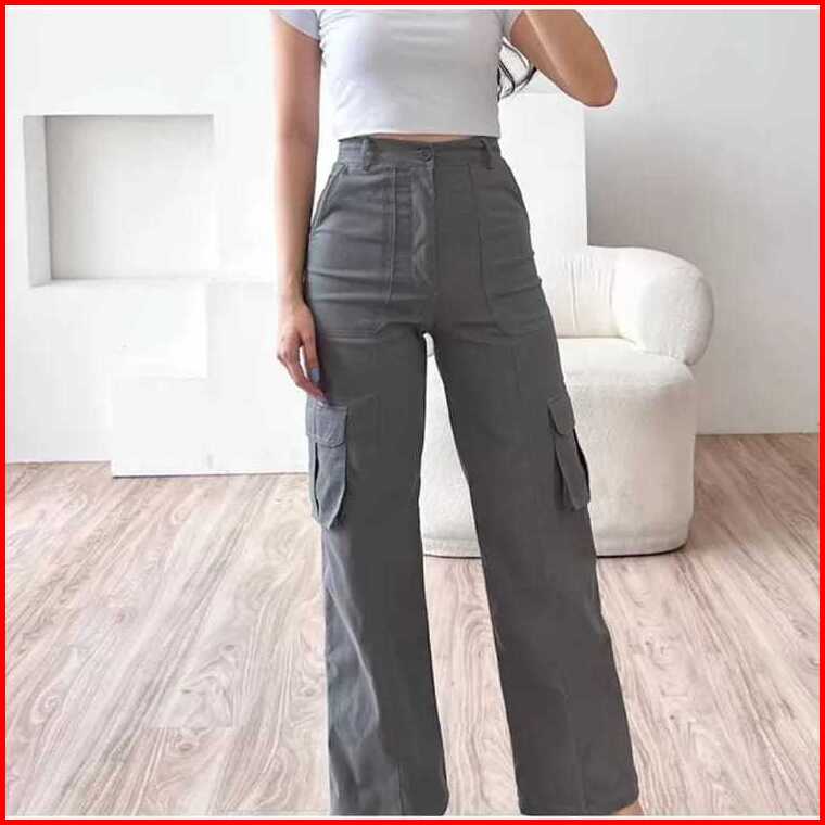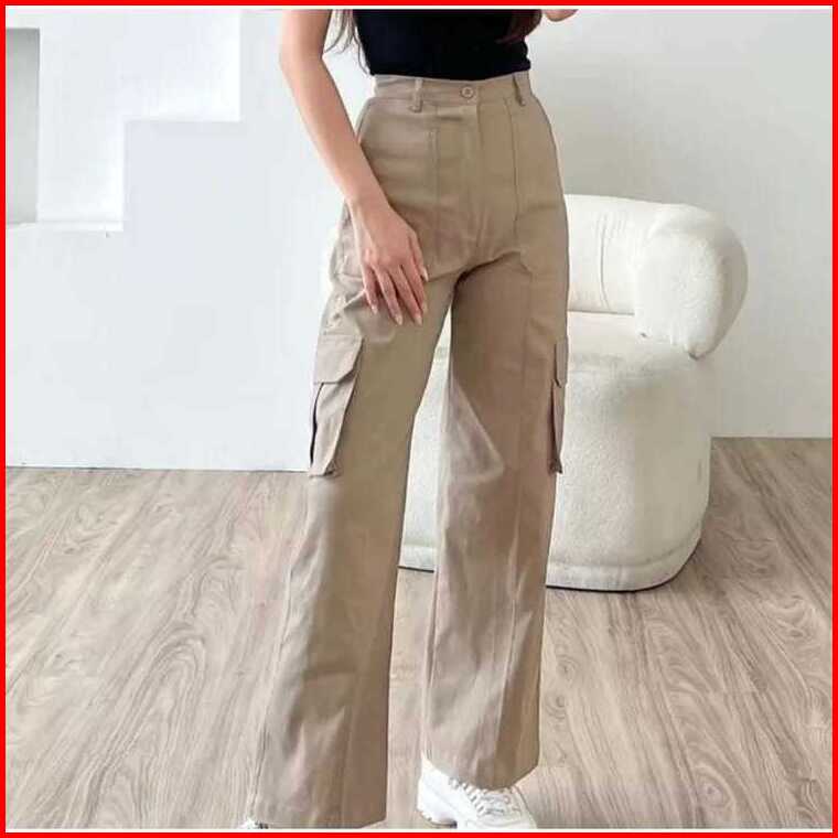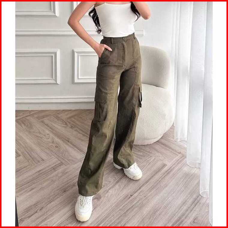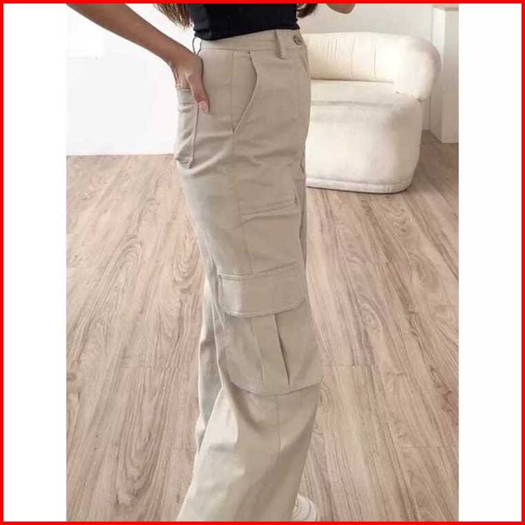 Rora Cargo Pants - Celana Cargo Wanita Katun Twill Stretch Highwaist Loose Korean Jumbo