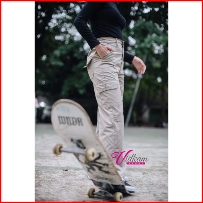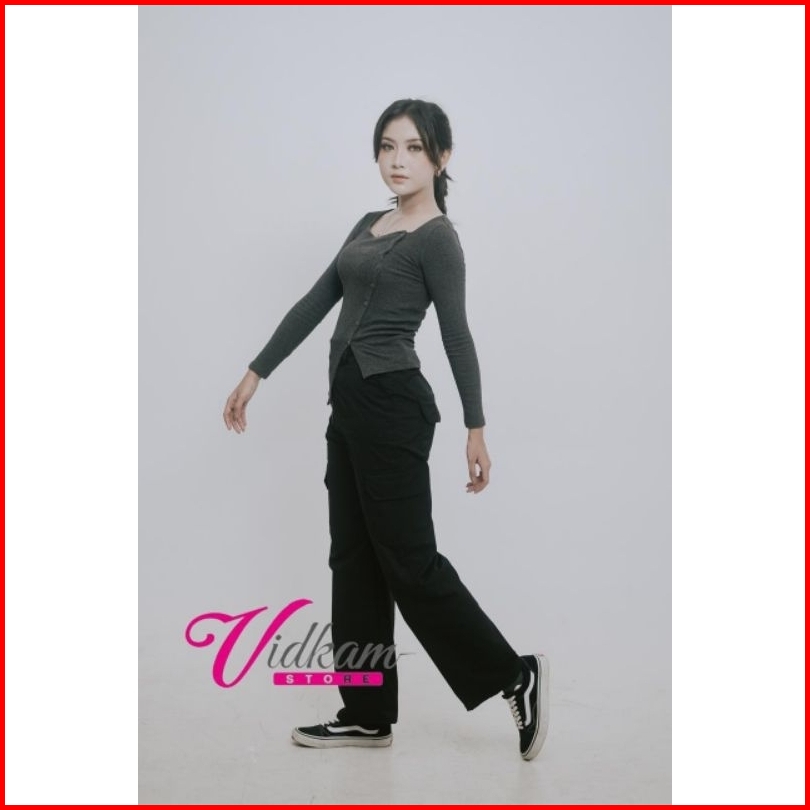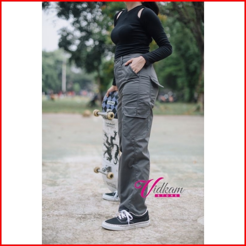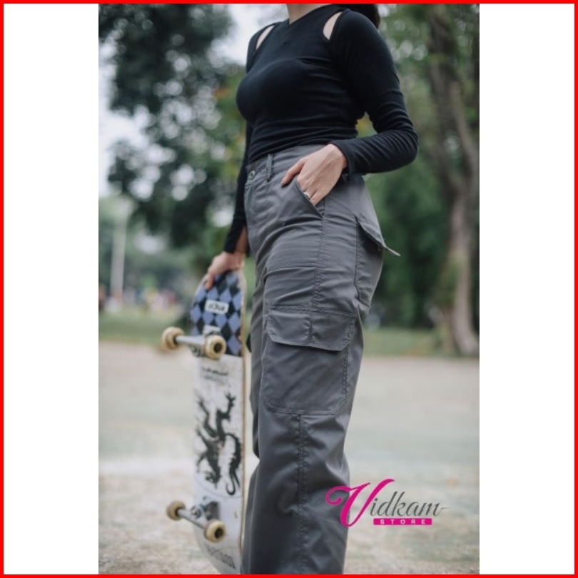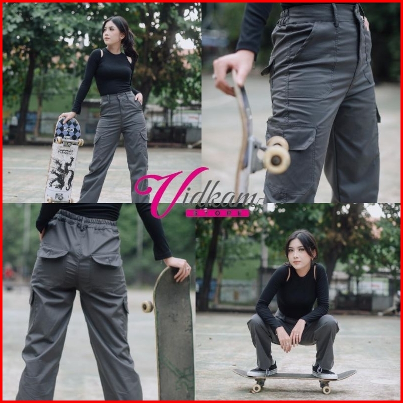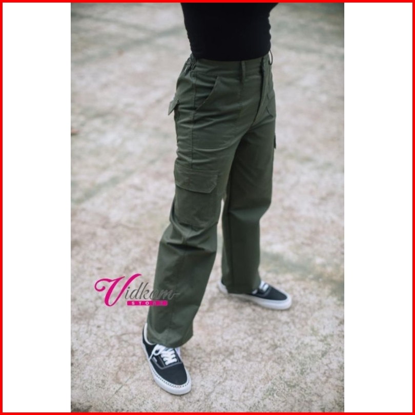 Cargo Pant High Waist Culottes Celana Kargo Panjang Kulot Pingggang Tinggi