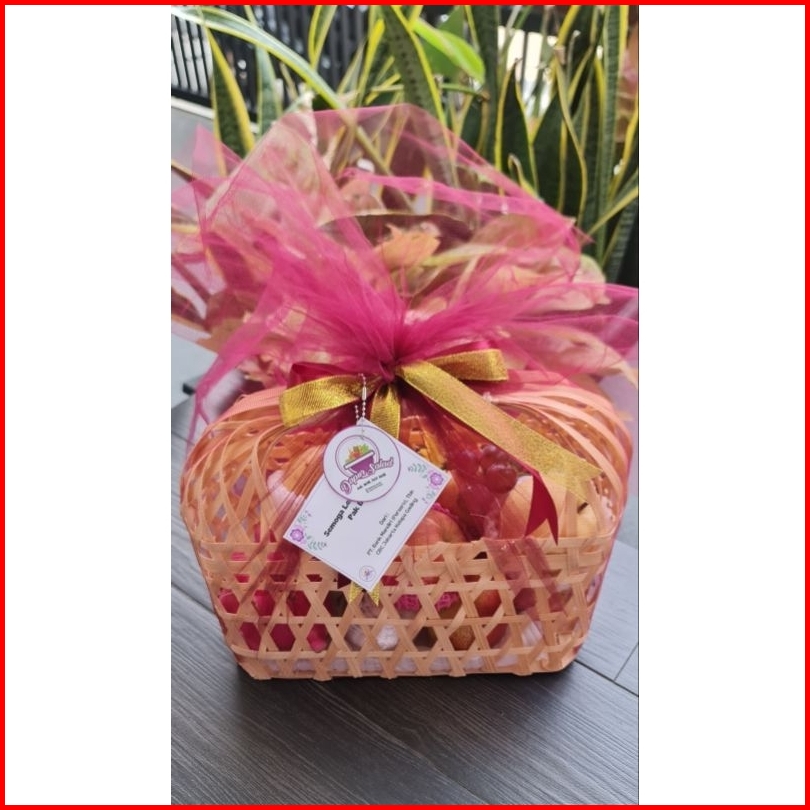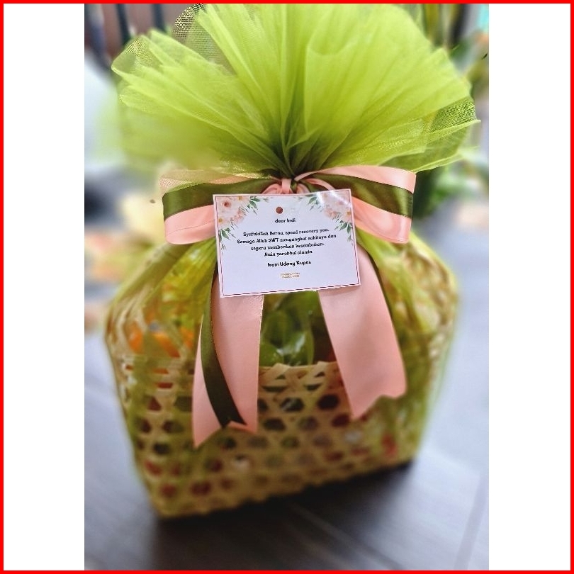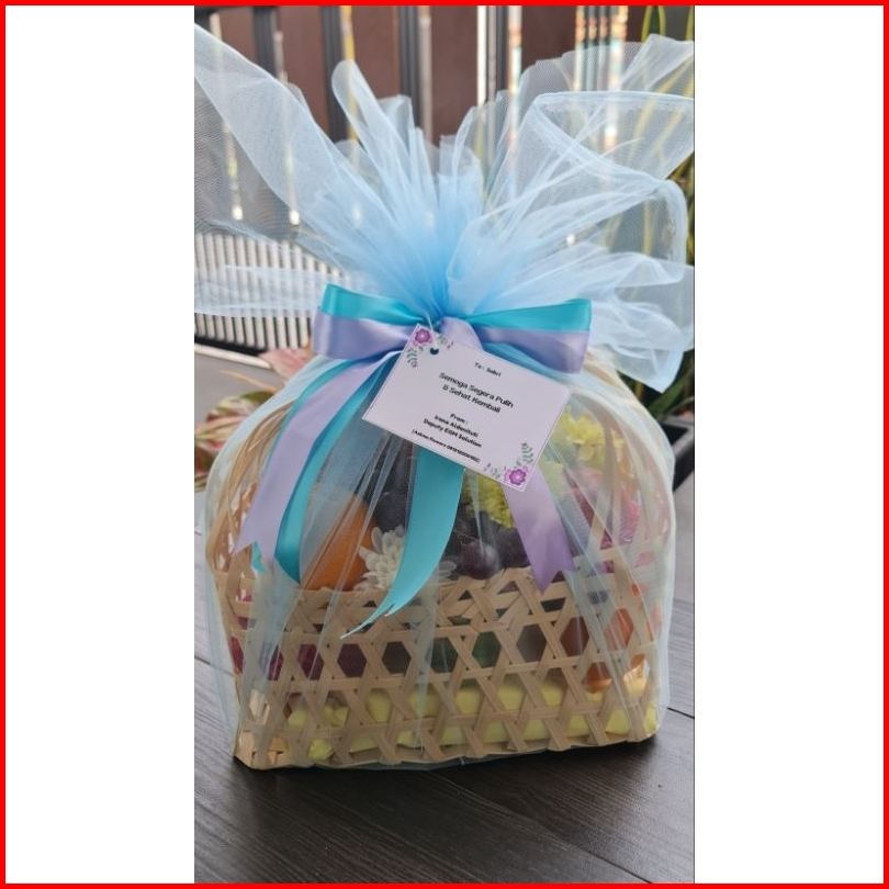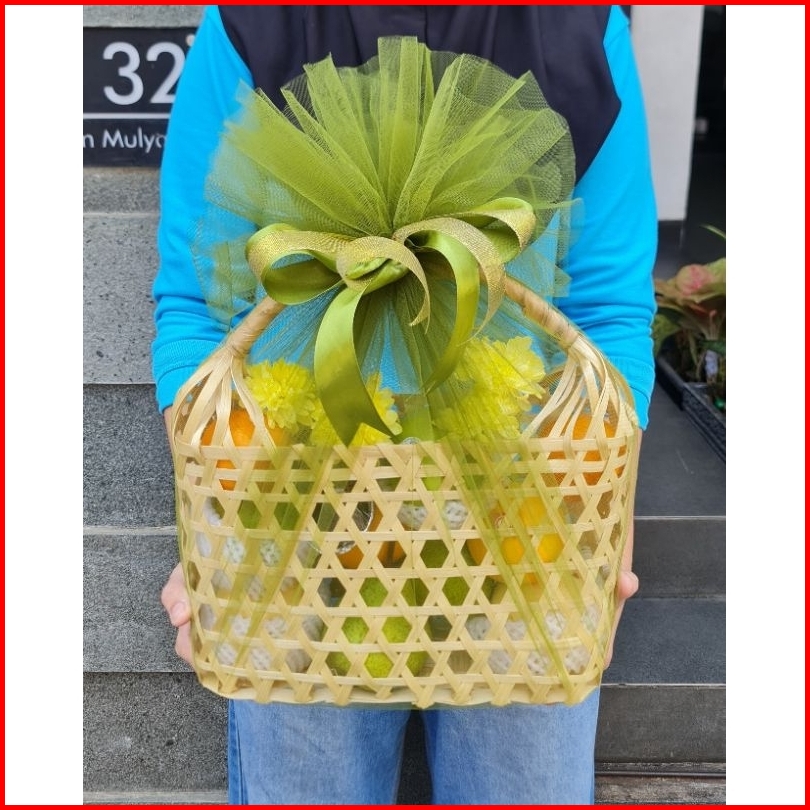 Parcel Buah Segar Tas Bambu Large Premium Free Kartu Ucapan Hampers Lebaran Natal Christmas Hospitality Lamaran