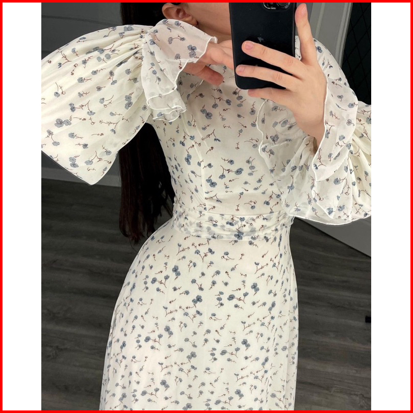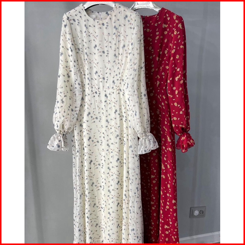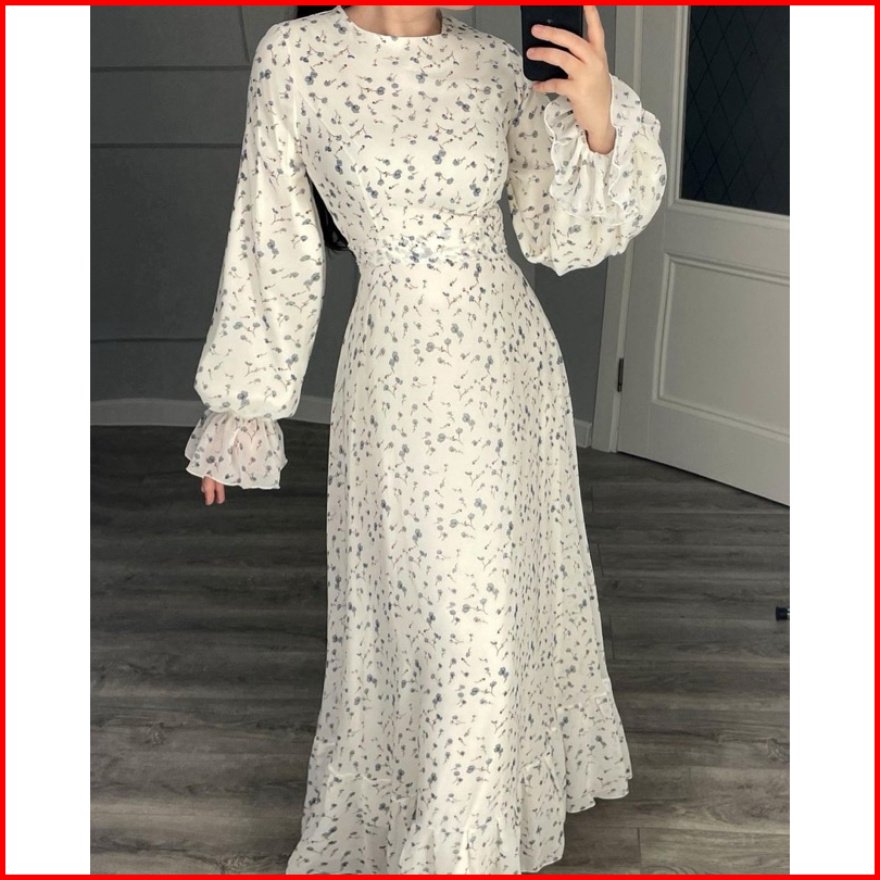 D1633 Mirna Korean Style Floral Vintage Maxi Dress Bunga Pantai Lengan Panjang Hijab Manis Liburan Jalan