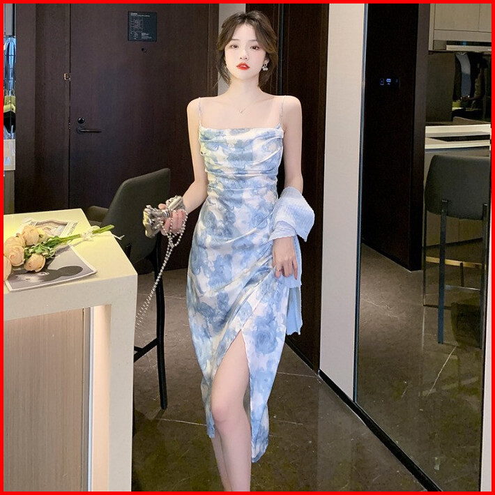 Baju Gaun Pantai Pesta Mewah Elegan Wanita Summer Long Korean Dress Casual Floral Beach Off Shoulder Dress Halter
