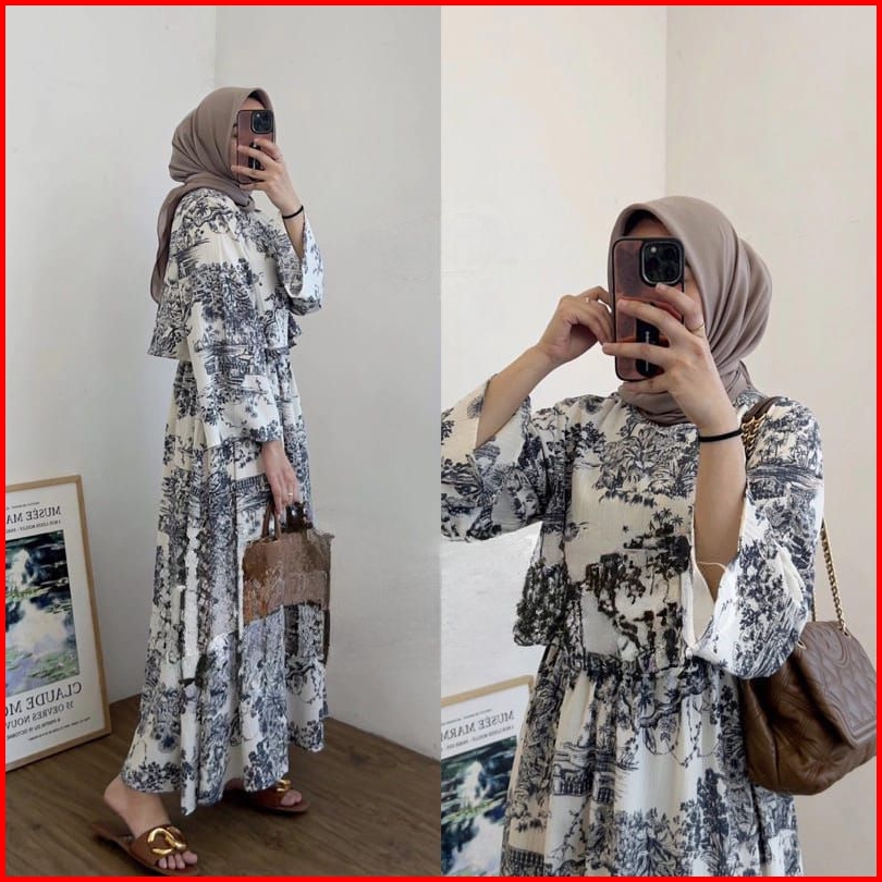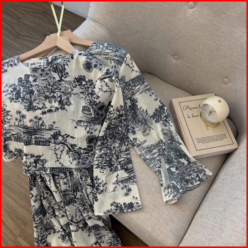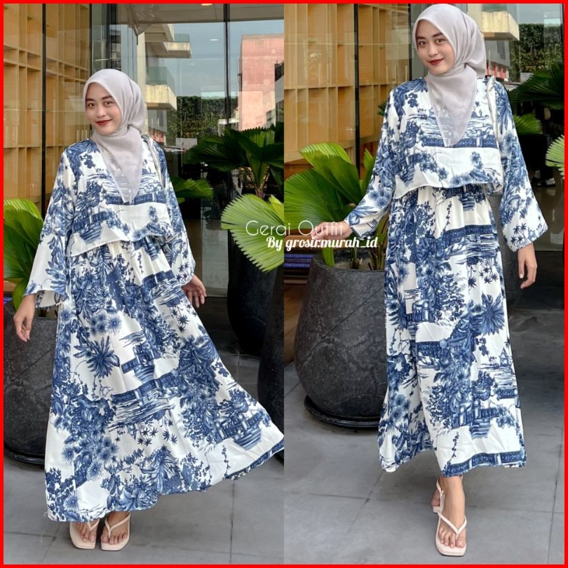 Palmy Dress Crinkle Motif Navy Darkgrey