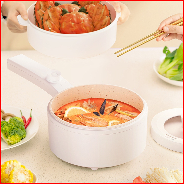 Panci Listrik Multifungsi 3 In 1 Mini Rice Cooker Lapisan Keramik Kukusan Listrik Peralatan Dapur