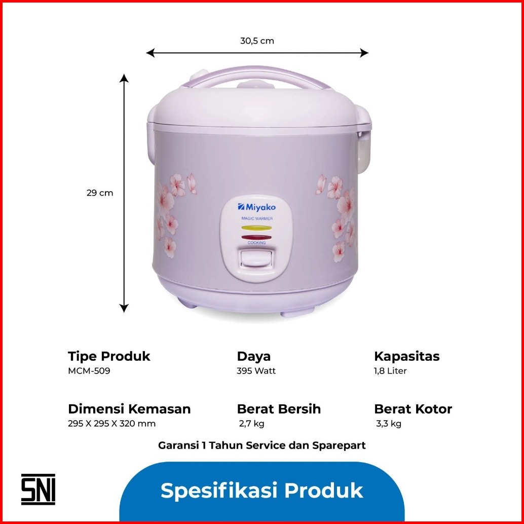 Miyako Mcm-509 Ts Rice Cooker Magic Com 3in1 - 1.8 Liter