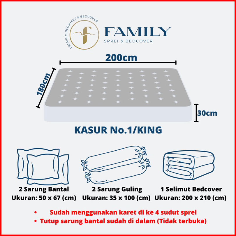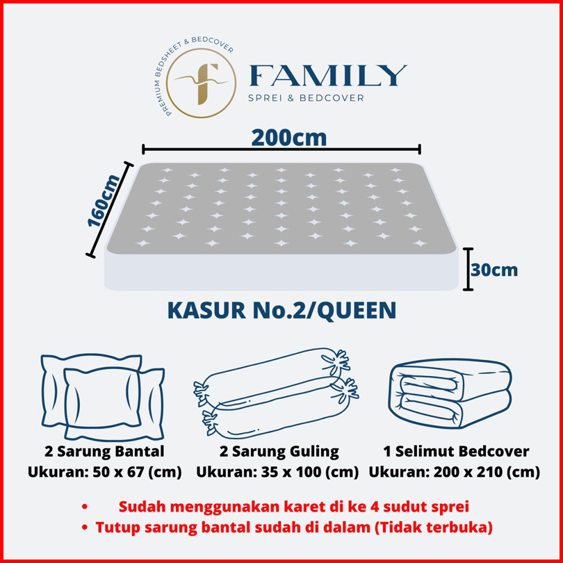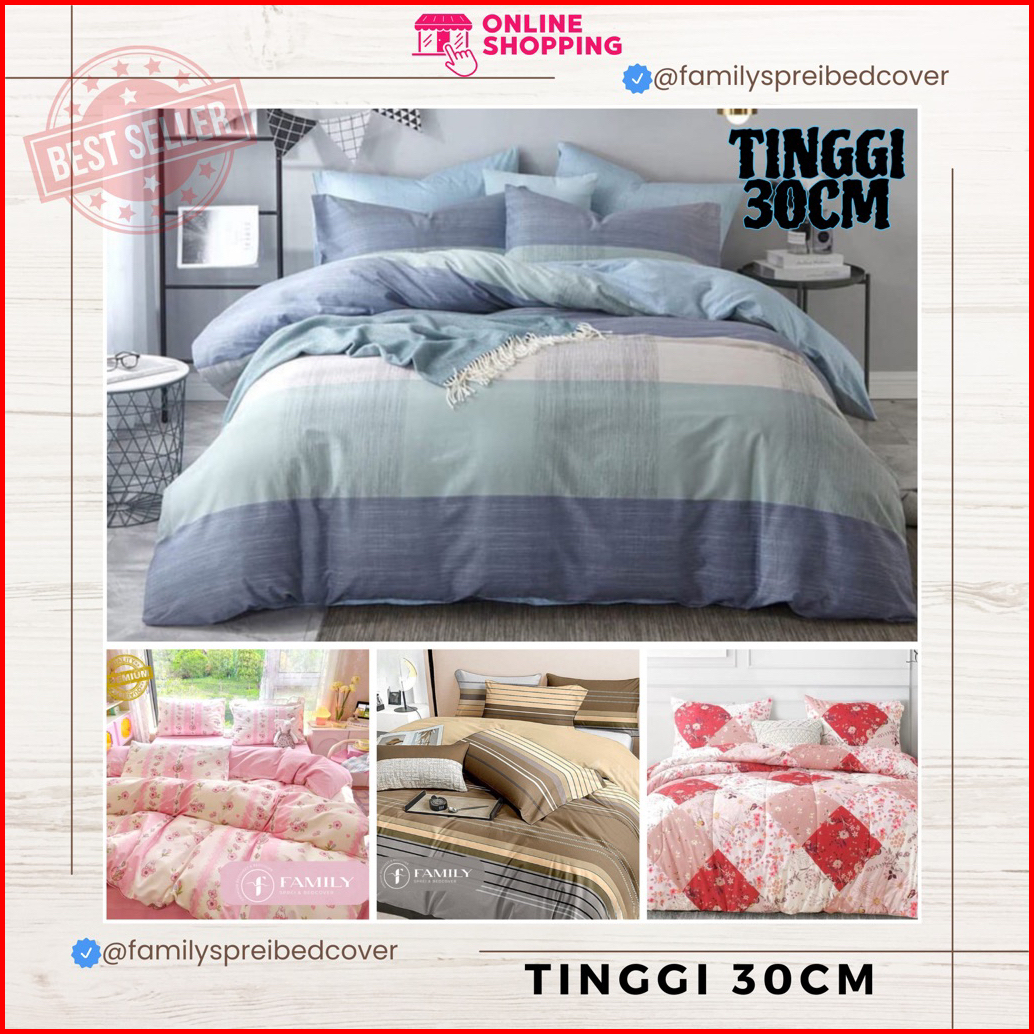 Bedcover Set Sprei Tinggi 30cm 180 160 King Queen No1 No2 Katun Lembut Kasur Bantal Sarung Family