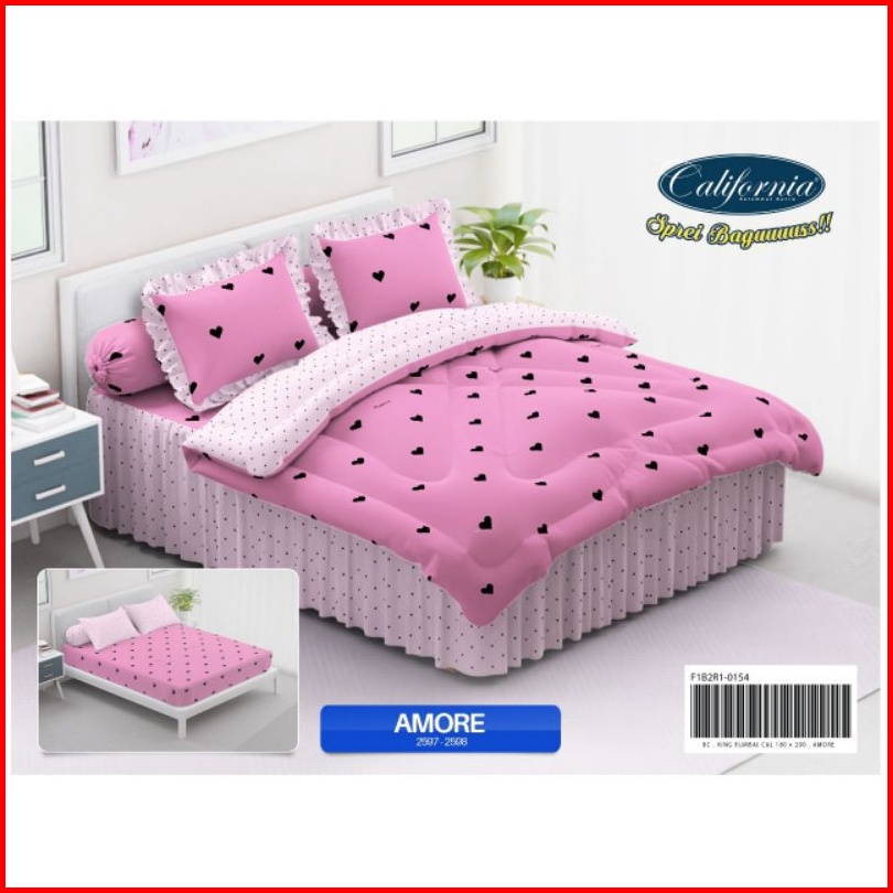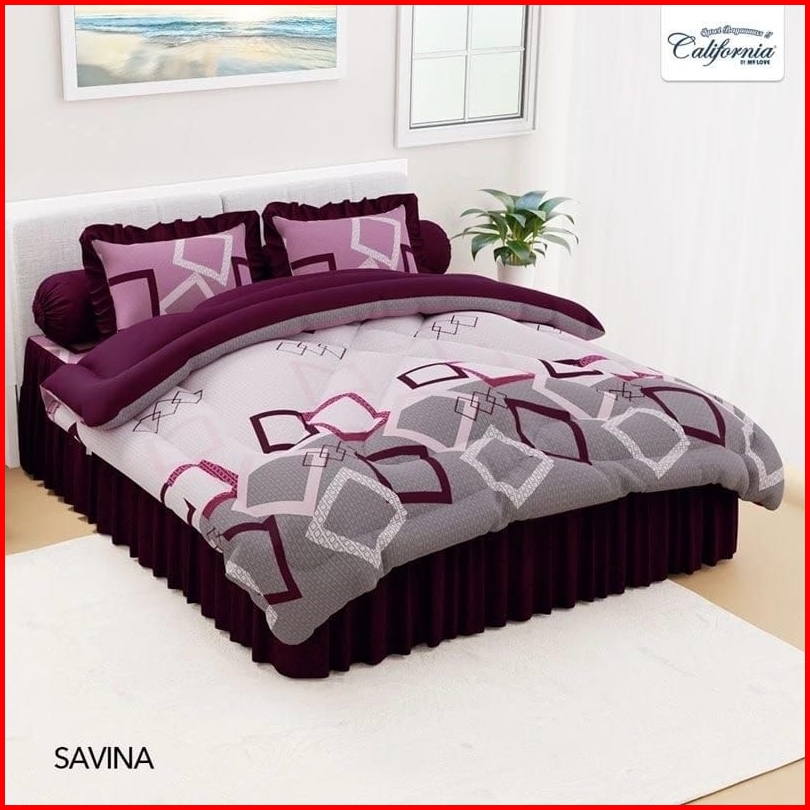 Satu Set Bed Cover California King Rumbai Fitted Bed Cover Saja. Motif Terbaru