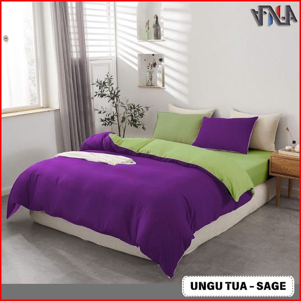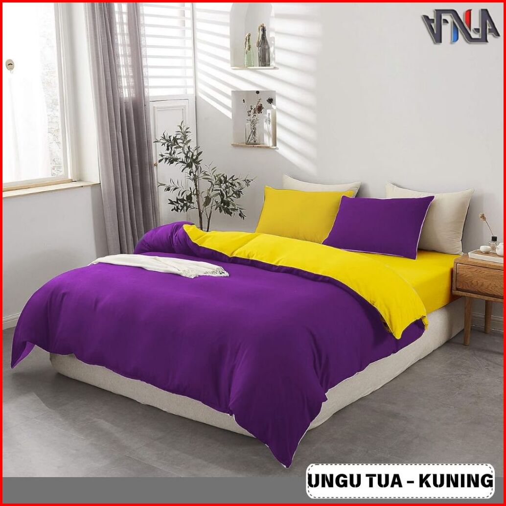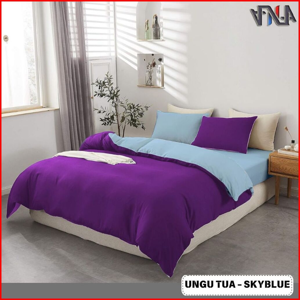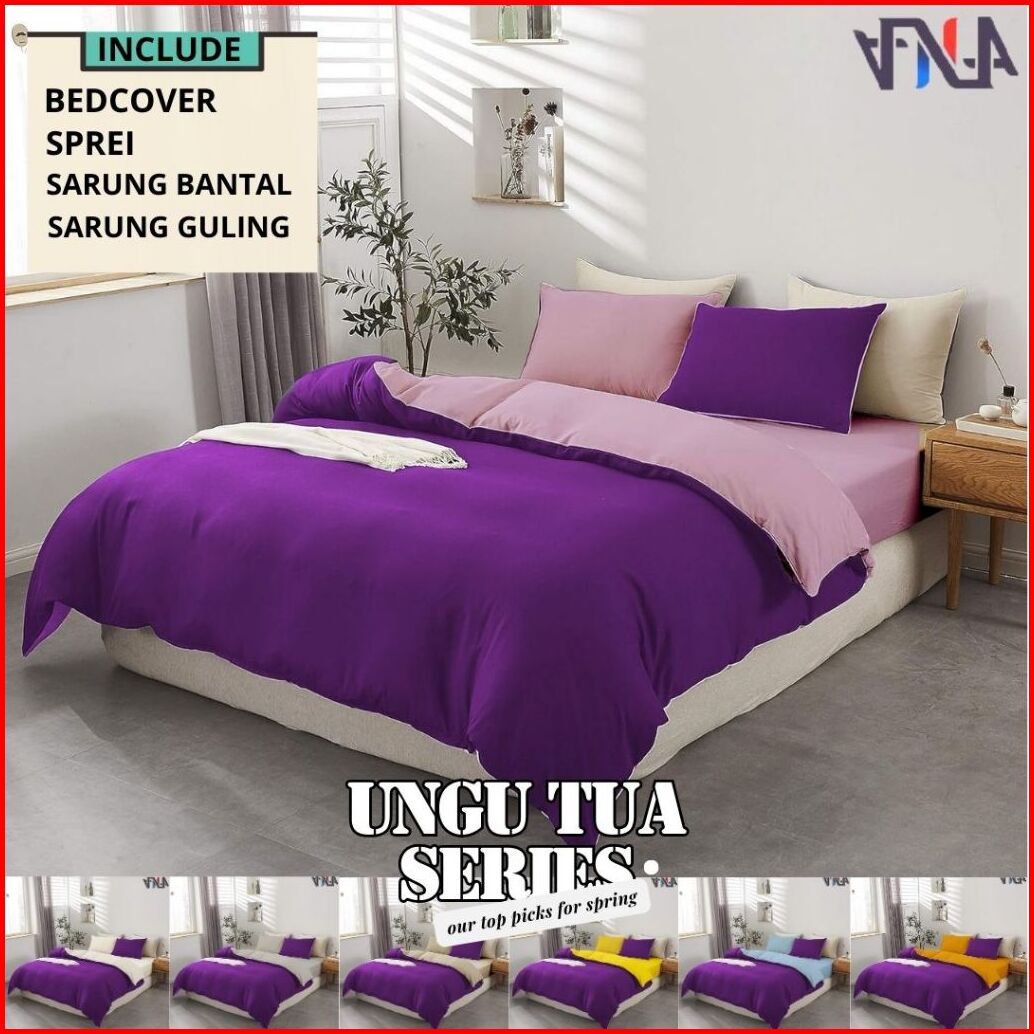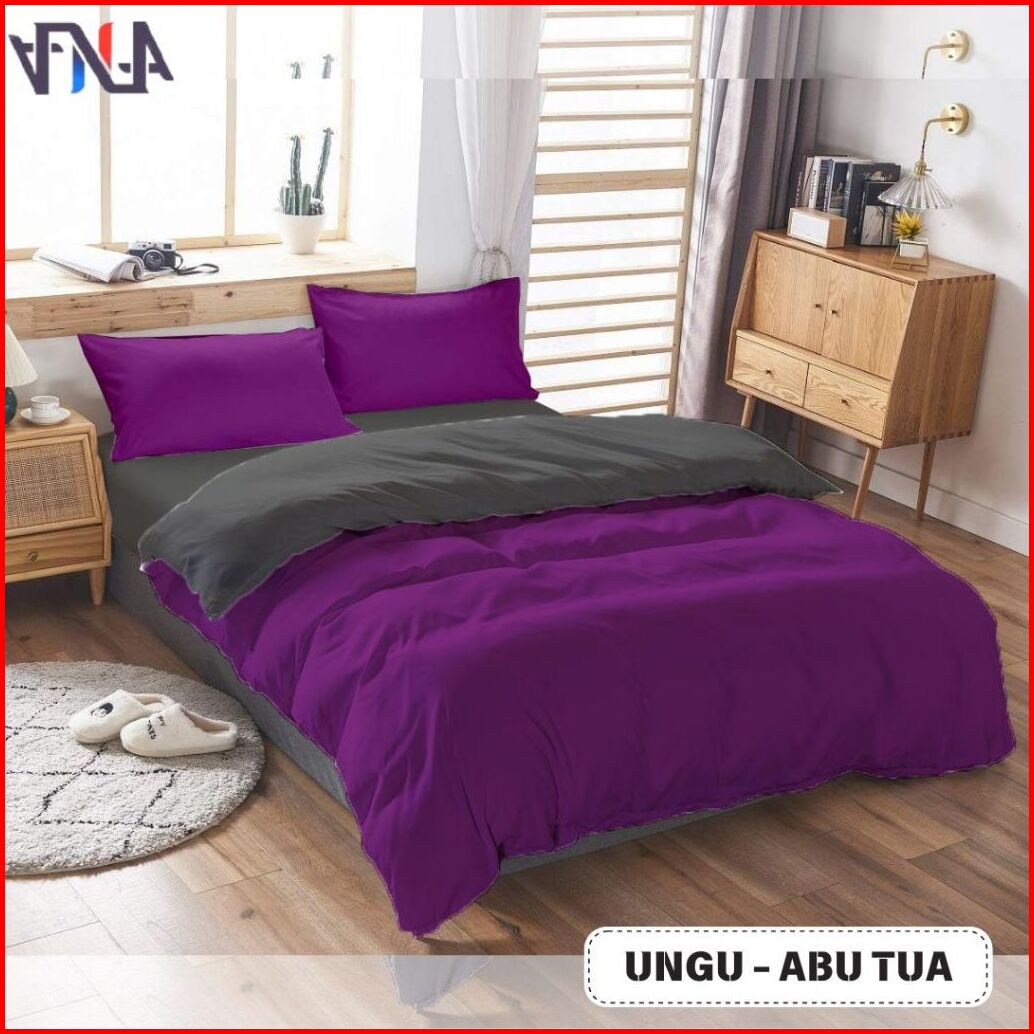Seri Ungu Bedcover Set Sprei Twotone Bahan Katun Lokal Halus Premium Ukuran Single-super King