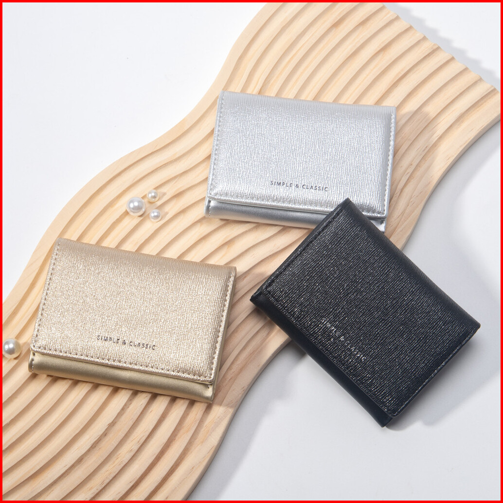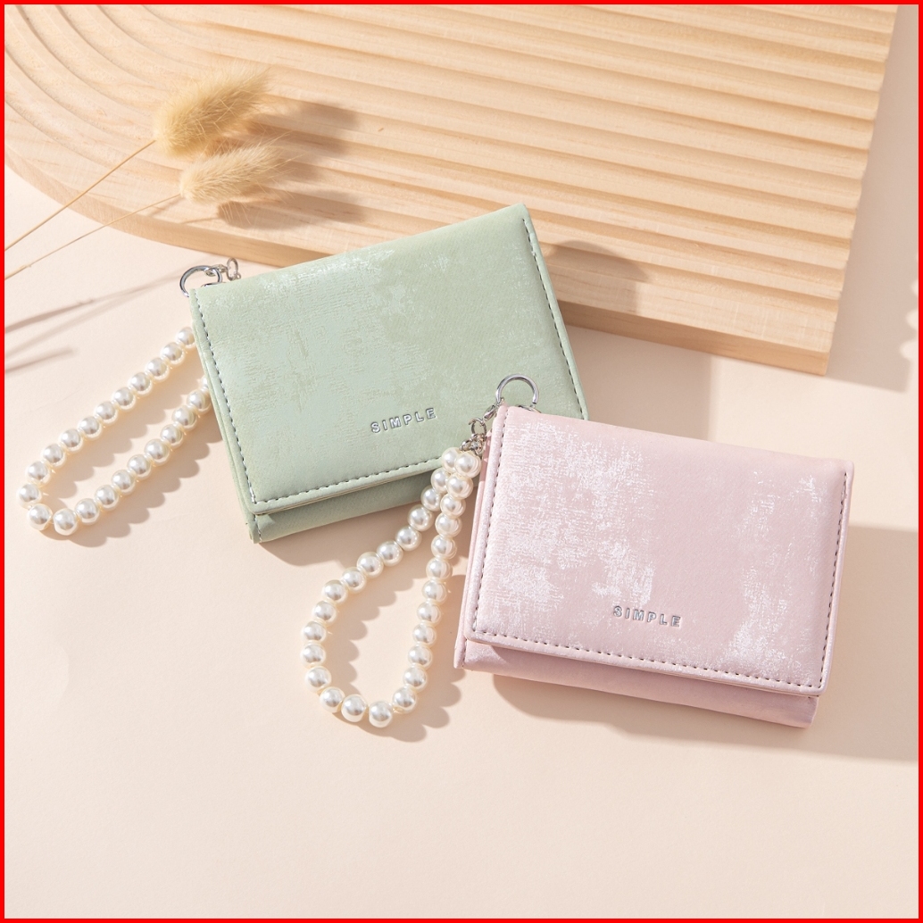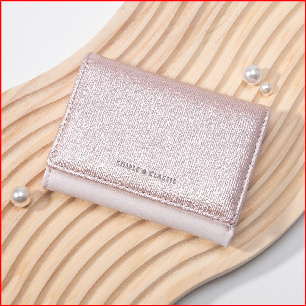 Dompet Lipat Wanita Kartu Huruf Glitter Korea Fashion Pu Kulit Perak Dmqb015 - Merah Muda -uang