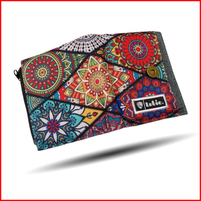 Lubie Dompet Lipat Wanita Dompet Anti Air Kanvas Poliester Plower