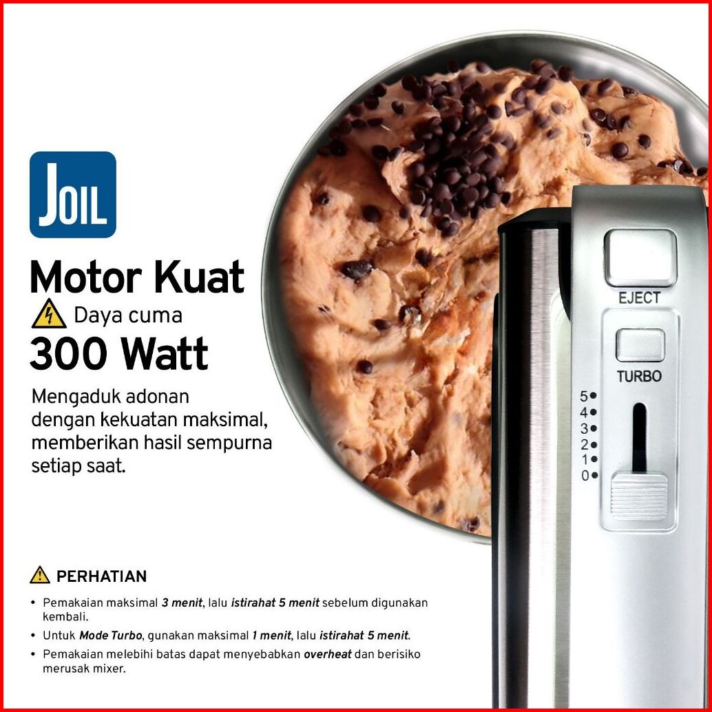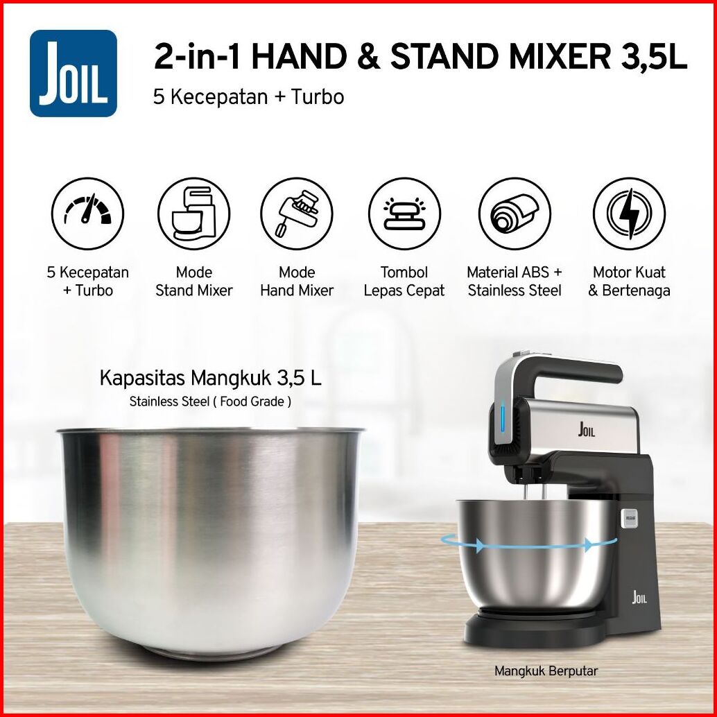 Joil Hand Stand Mixer M3 Stainless Steel 5 Kecepatan Turbo