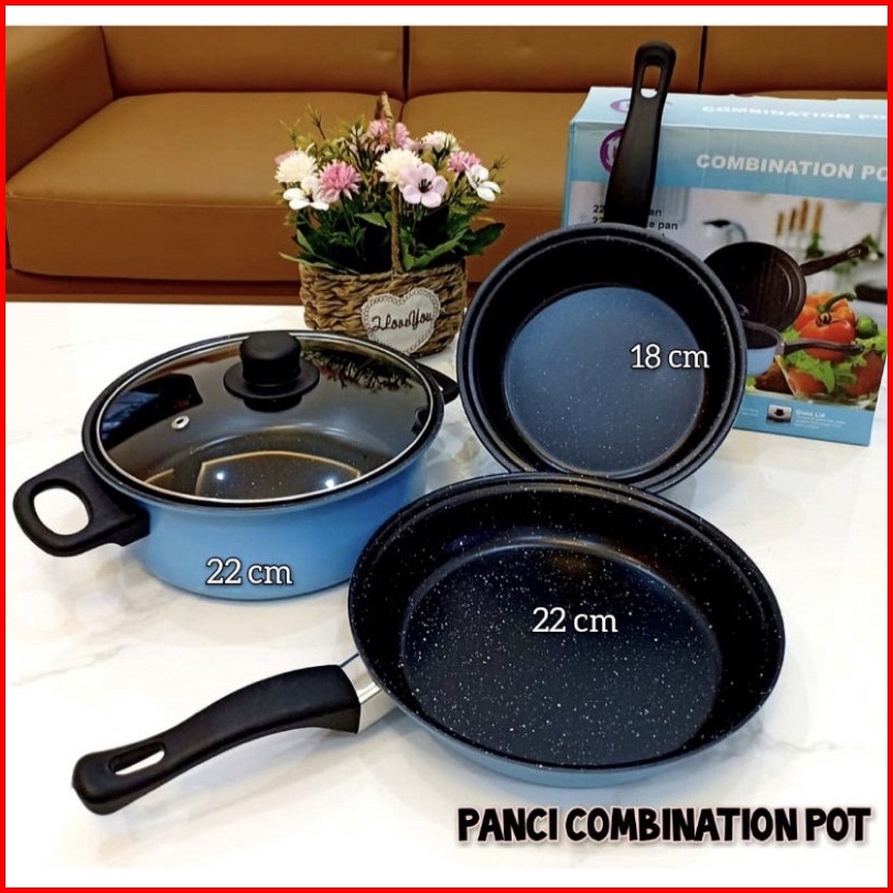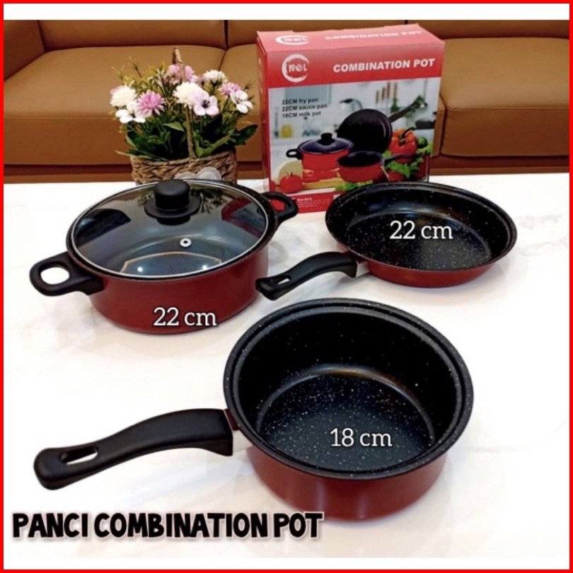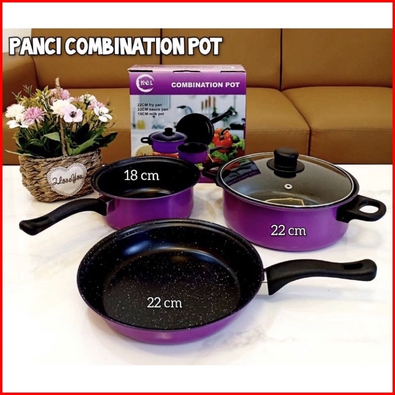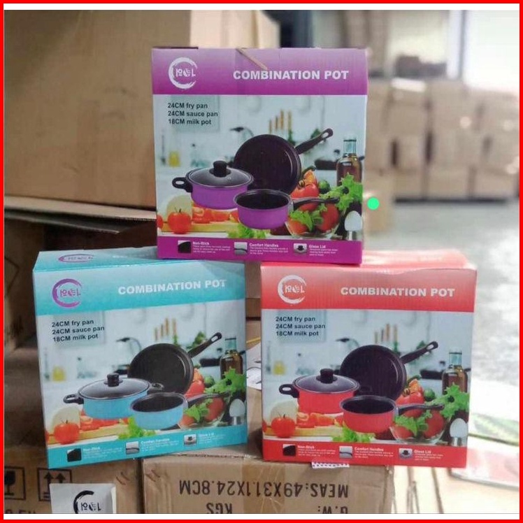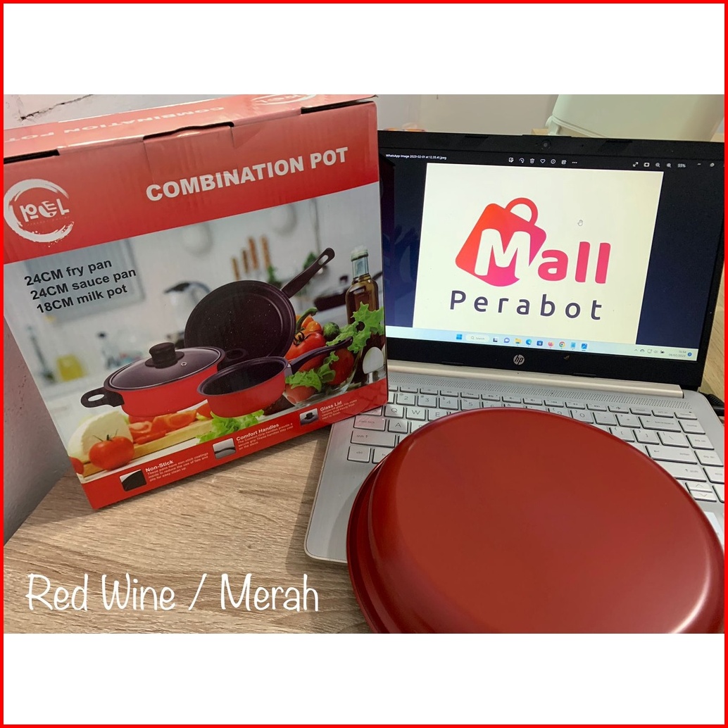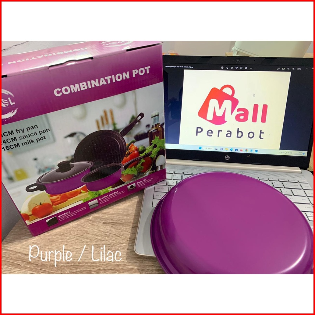 Mall Perabot Panci 3 Pcs Combination Pot Cookware Set Kombinasi Fry Pan Sauce Milk Pot 3in1