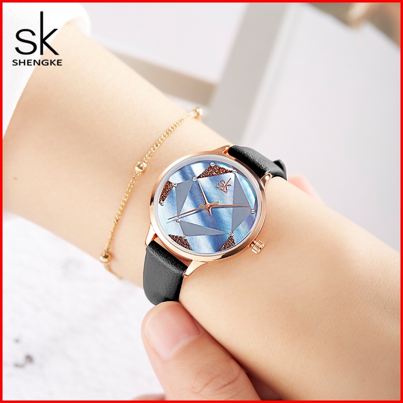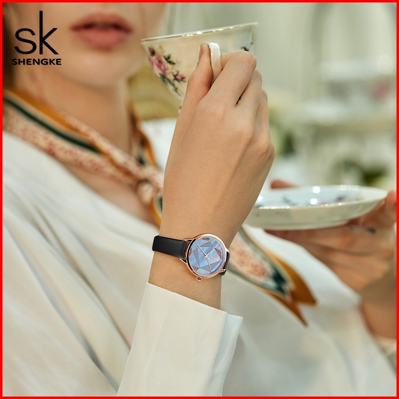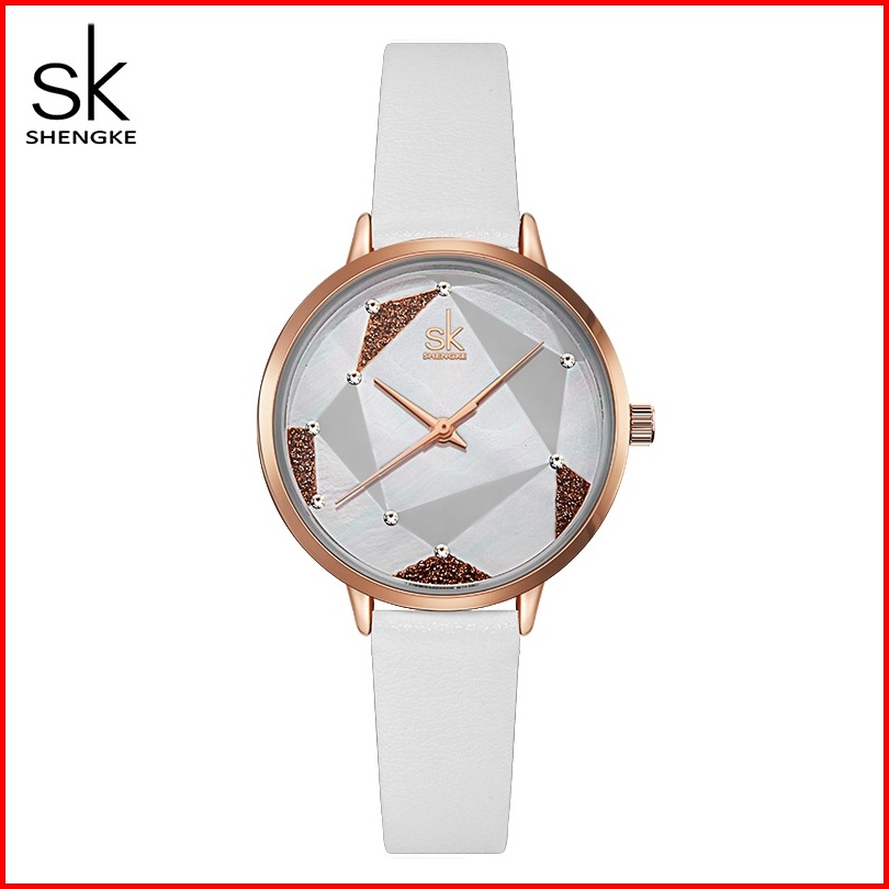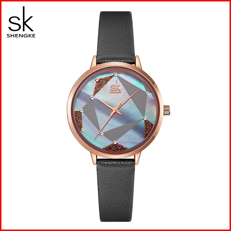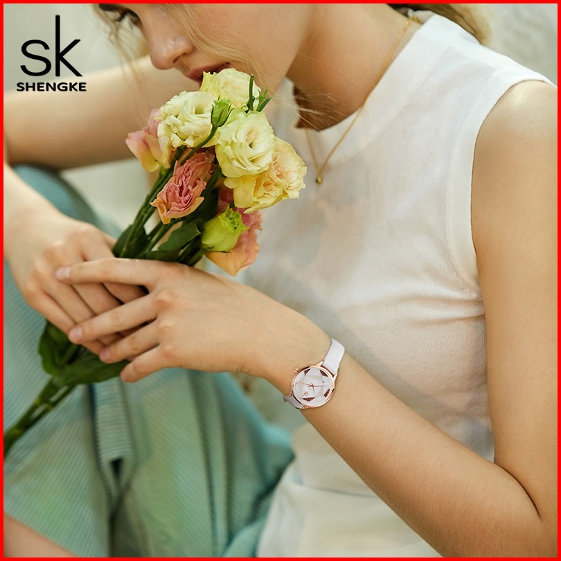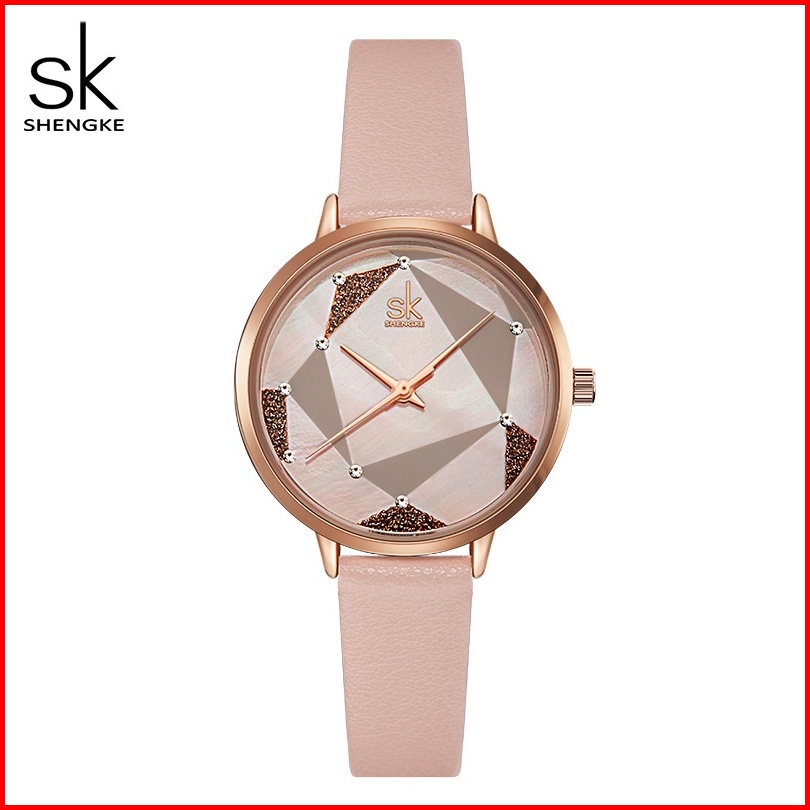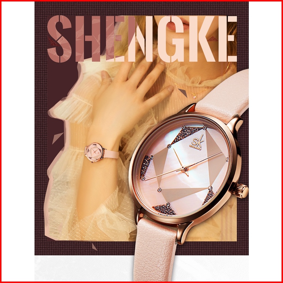 Shengke Jam Tangan Wanita Luxury Leather Strap Quartz Movement Water Resist K0117l