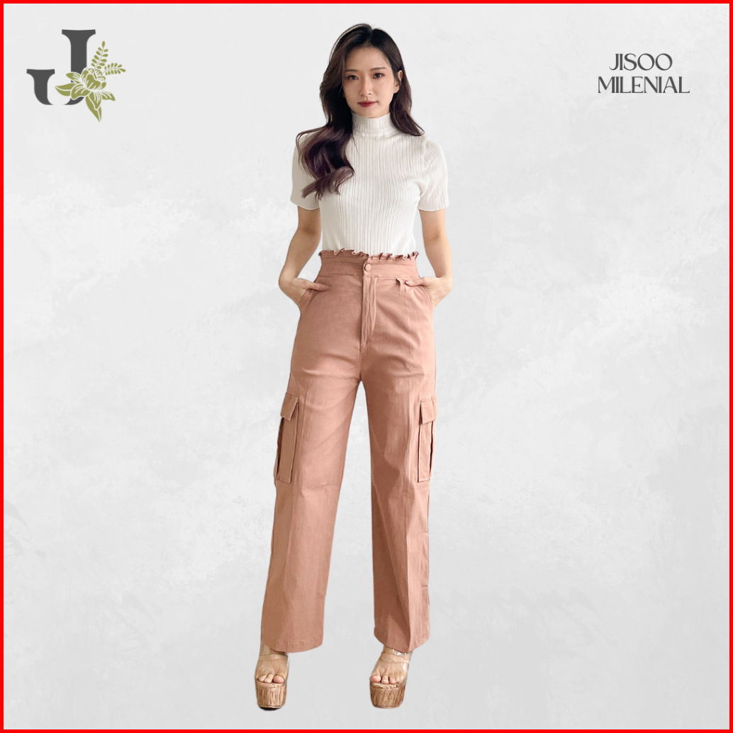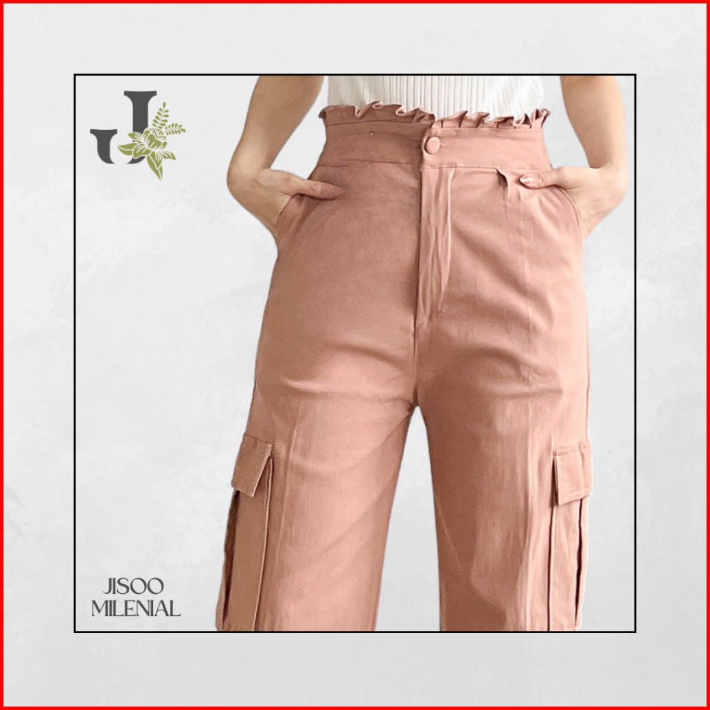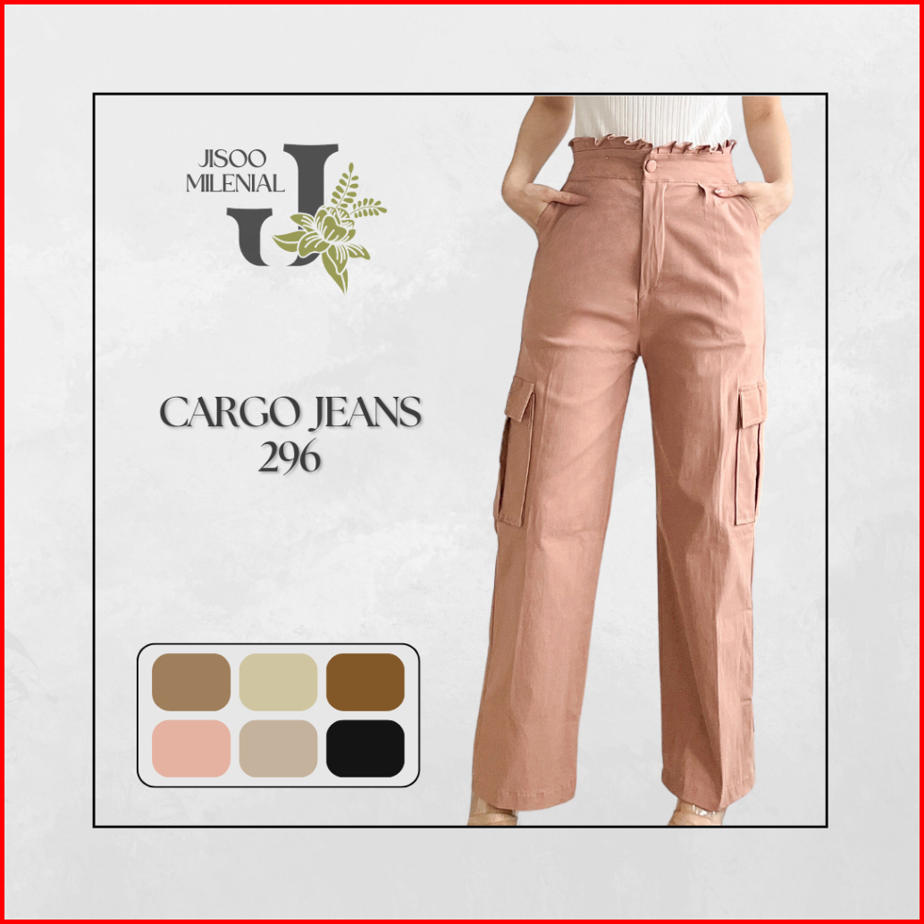 Jisoo Celana Wanita Import Soft Jeans Cargo 296