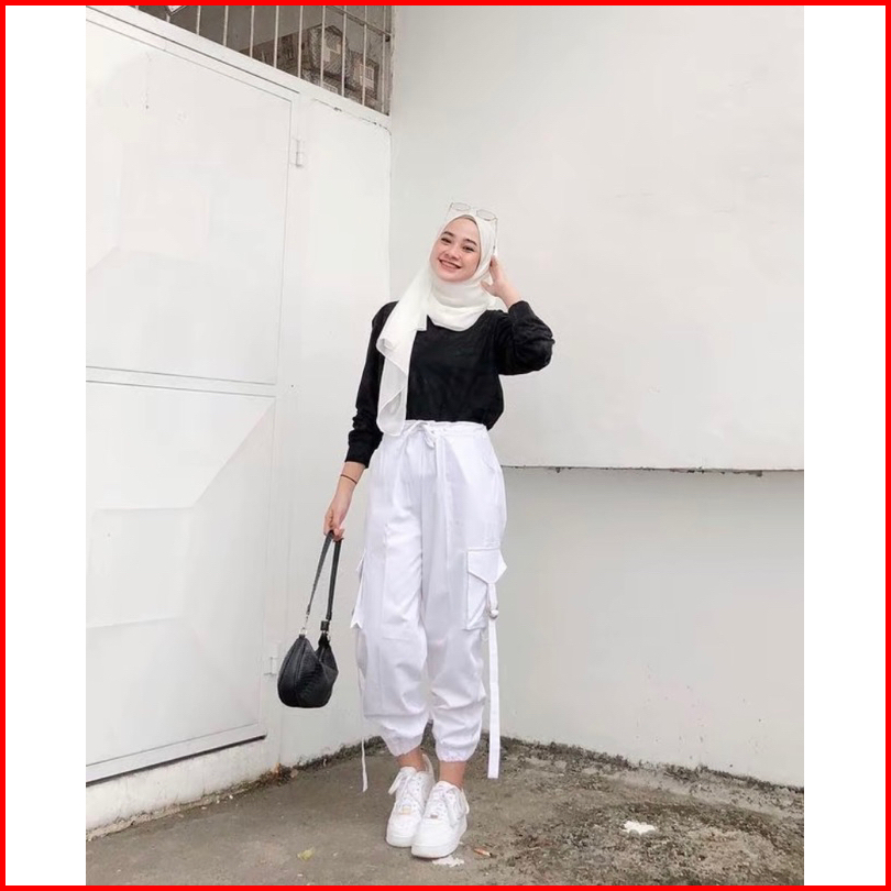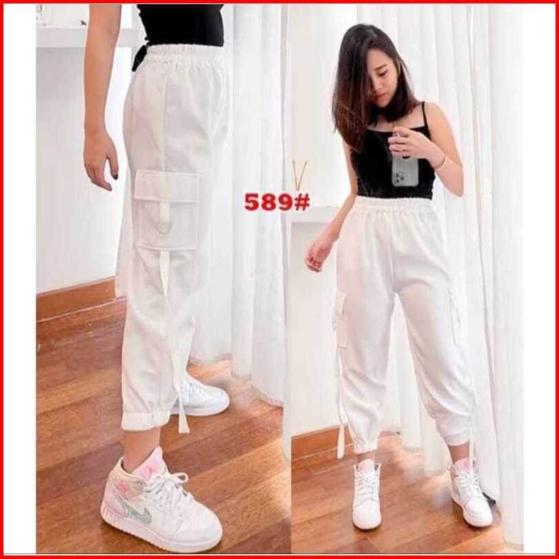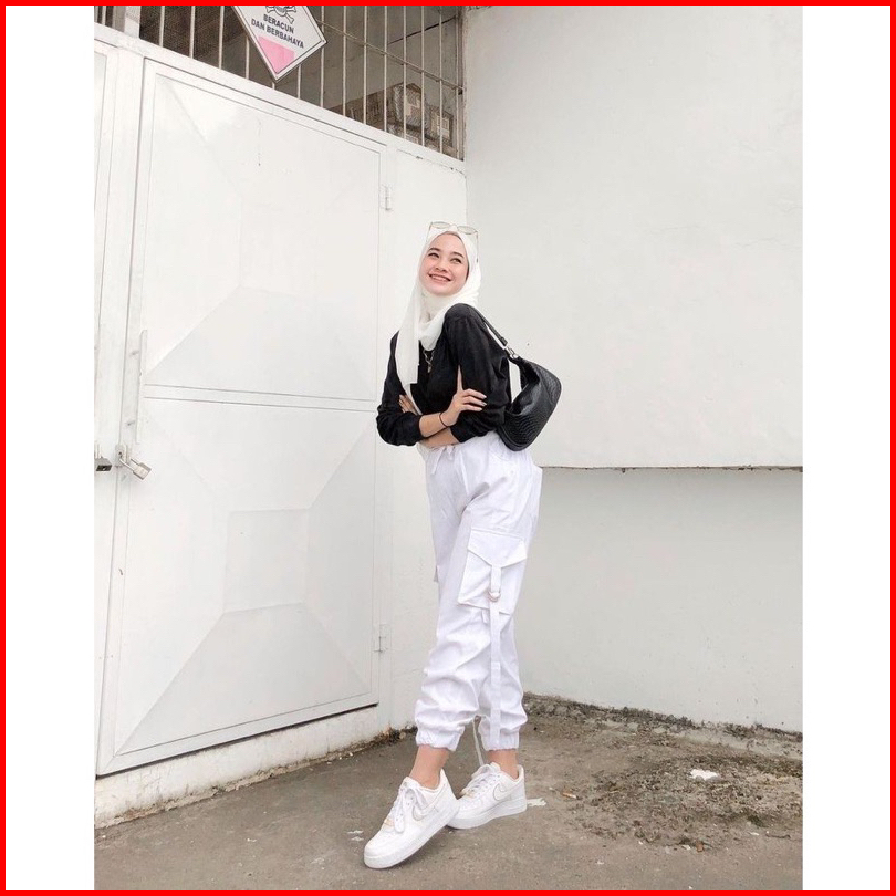 Celana Joger Cargo Wanita Sweatpants Bahan Scuba Standart Jumbo