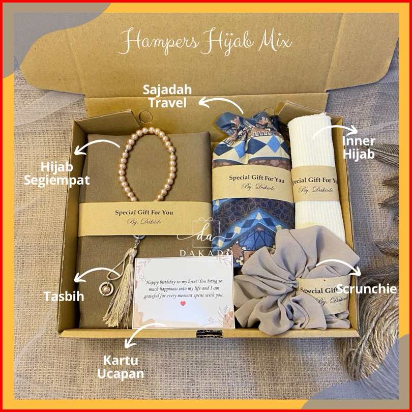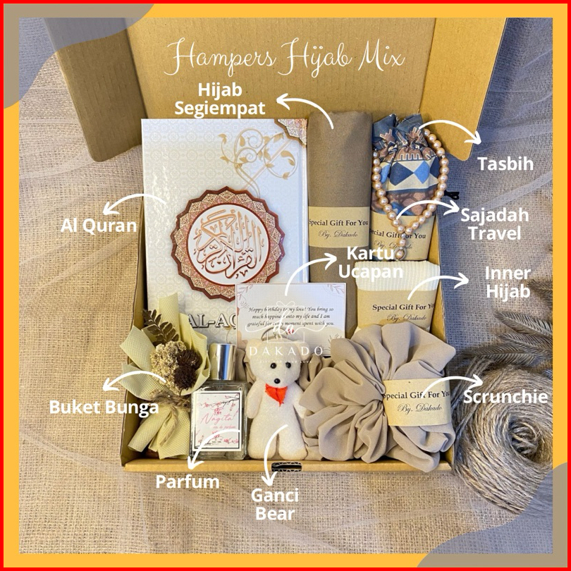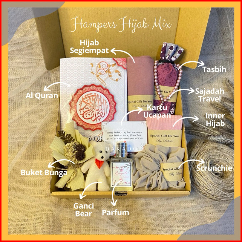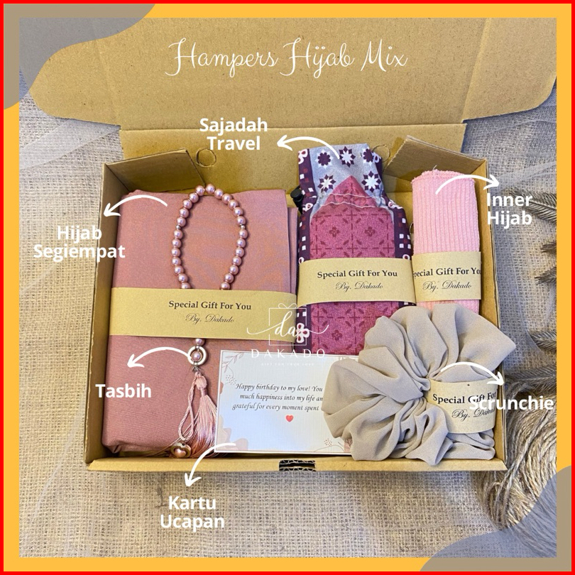 Hampers Hijab Motif Hijab Polos Segiempat Premium Mix Tasbih Scrunchie Souvenir Idul Fitri Hampers Idul Fitri Ramadhan M