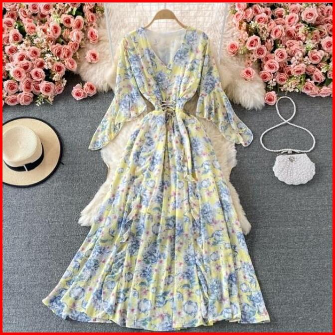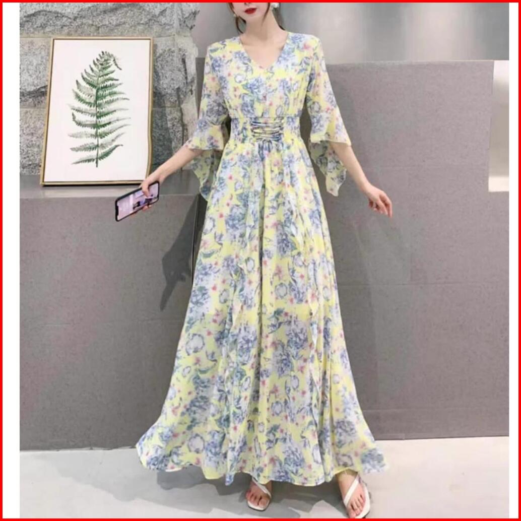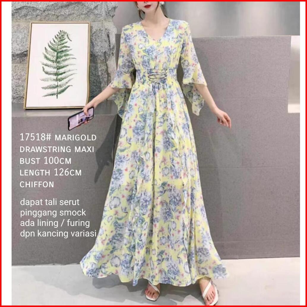 Basica Moda 17518 Gaun Dress Maxi Wanita Marigold Chiffon