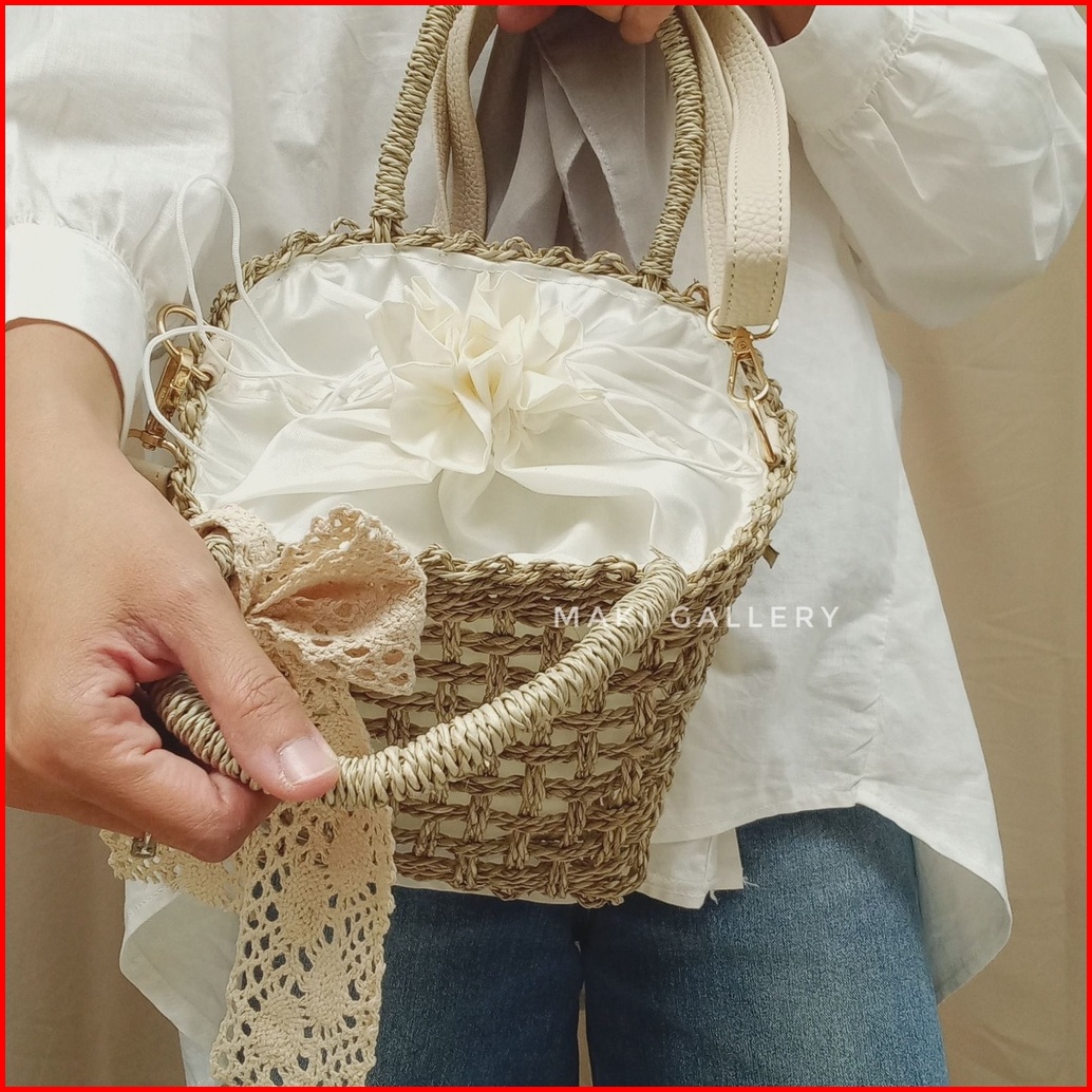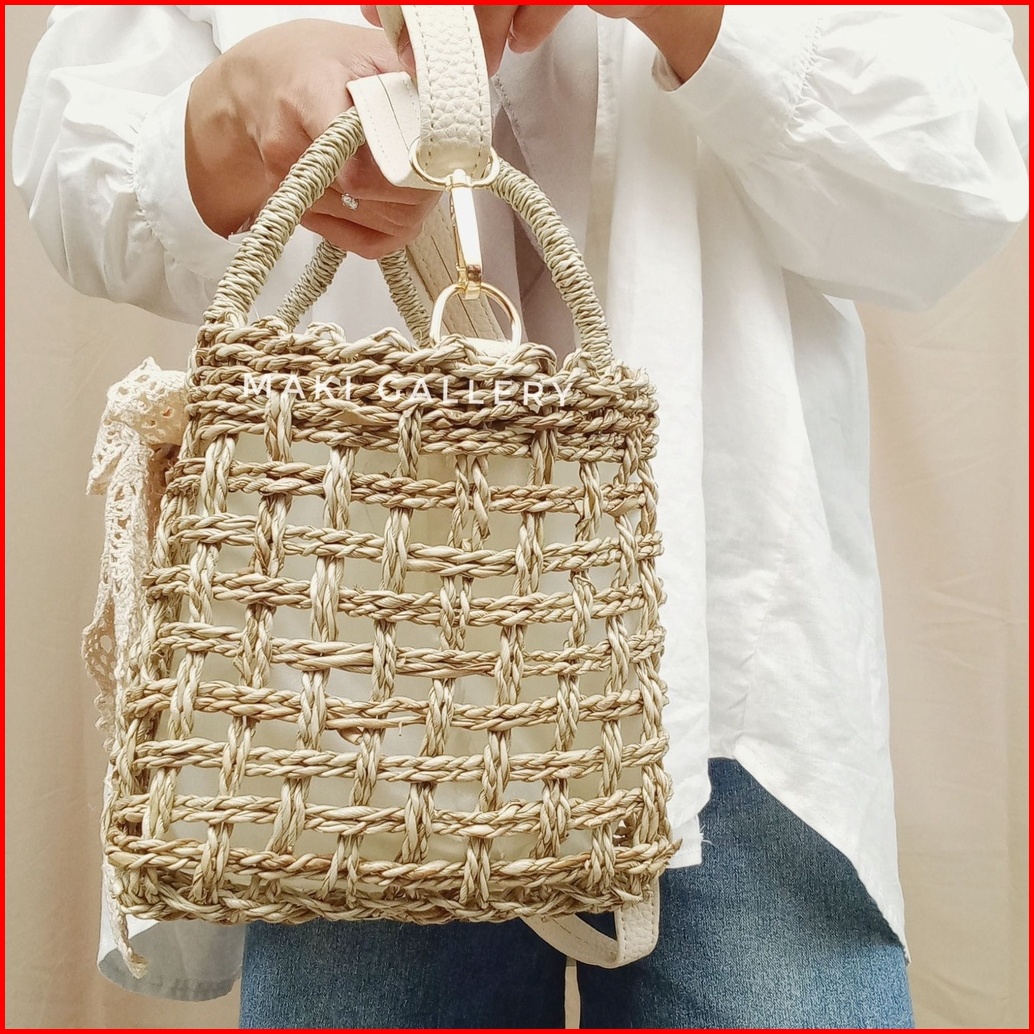 Tas Anyaman Kerajinan Mendong Pandan Bali Handmade Etnik Wanita Cube Selempang By Maki Gallery