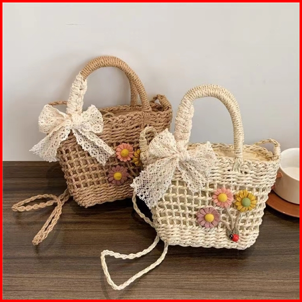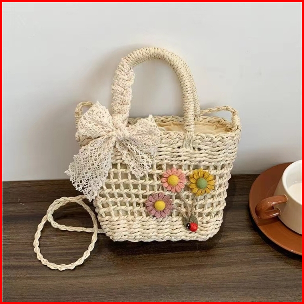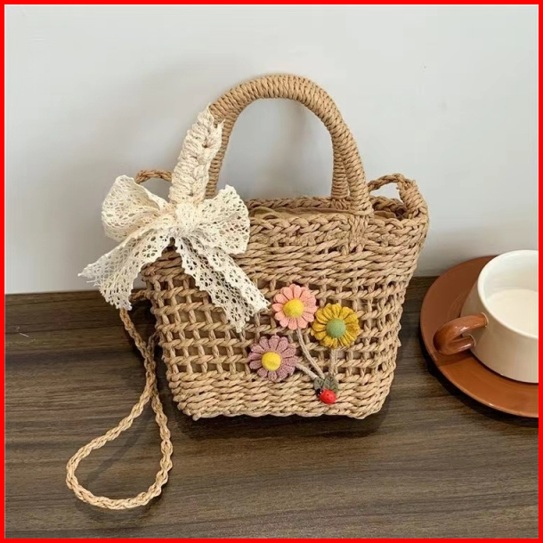 Mv Marvelouz Mv140828 Tas Selempang Wanita Cantik Bunga-bunga Tas Rotan Bahan Straw Terbaru 1kg Bisa 2 Tas Supplier Tas