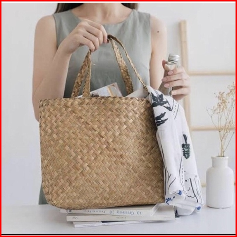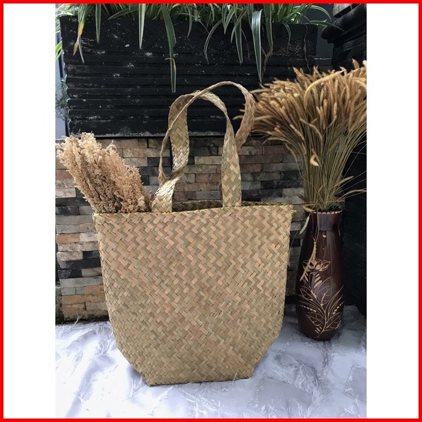Tas Purun Kalimantan Tali Panjang Anyaman Rumput