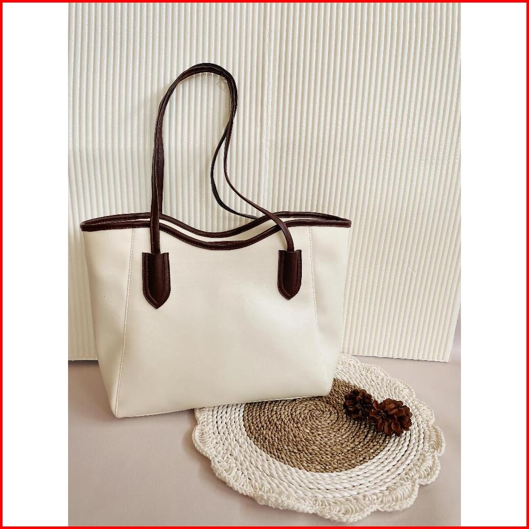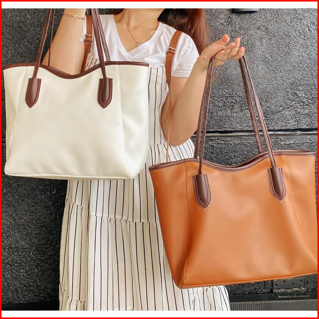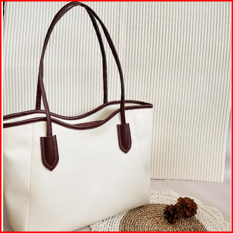 Tote Bag Wanita Korea Kulit Sintetis Tas Kerja Kuliah Dengan Resleting Saku Dalam