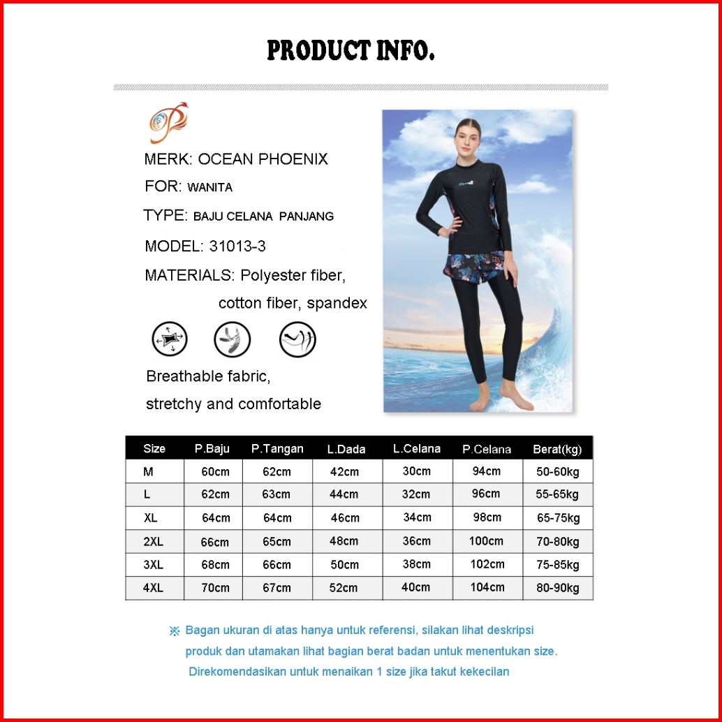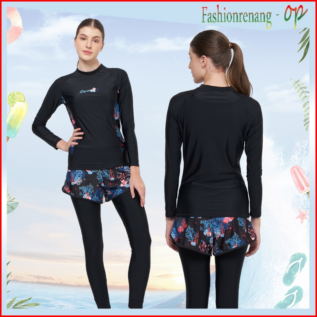 31013-3 Baju Renang Wanita Baju Renang Dewasa Baju Renang Muslim Dua Piece Fashion Dewasa Baju Renang Lengan Panjang Pak