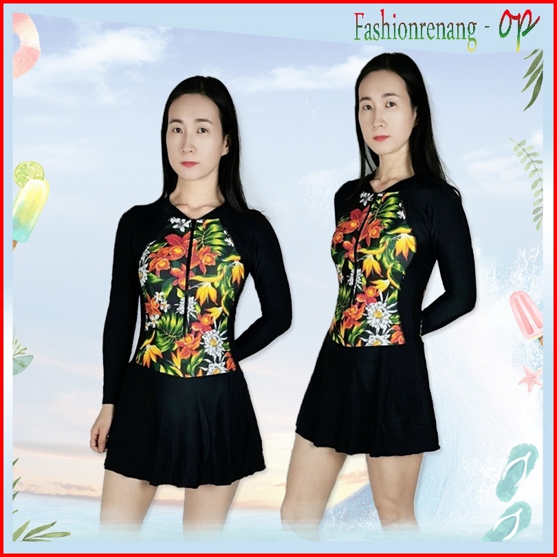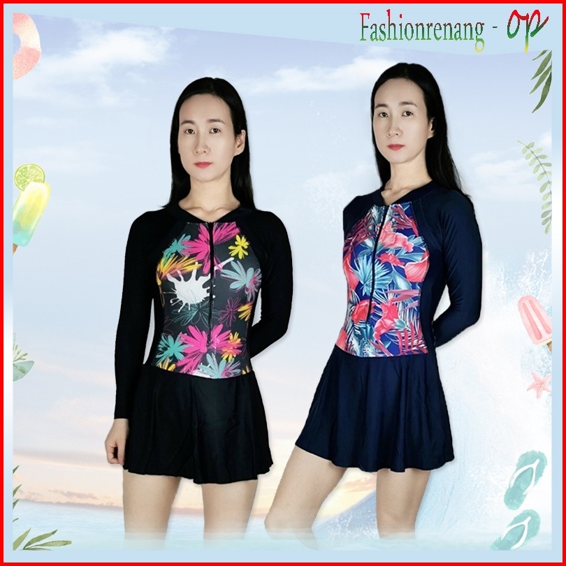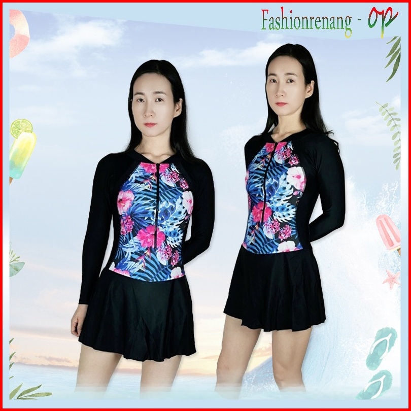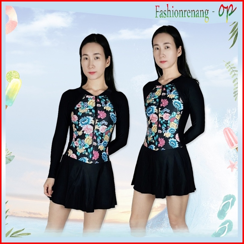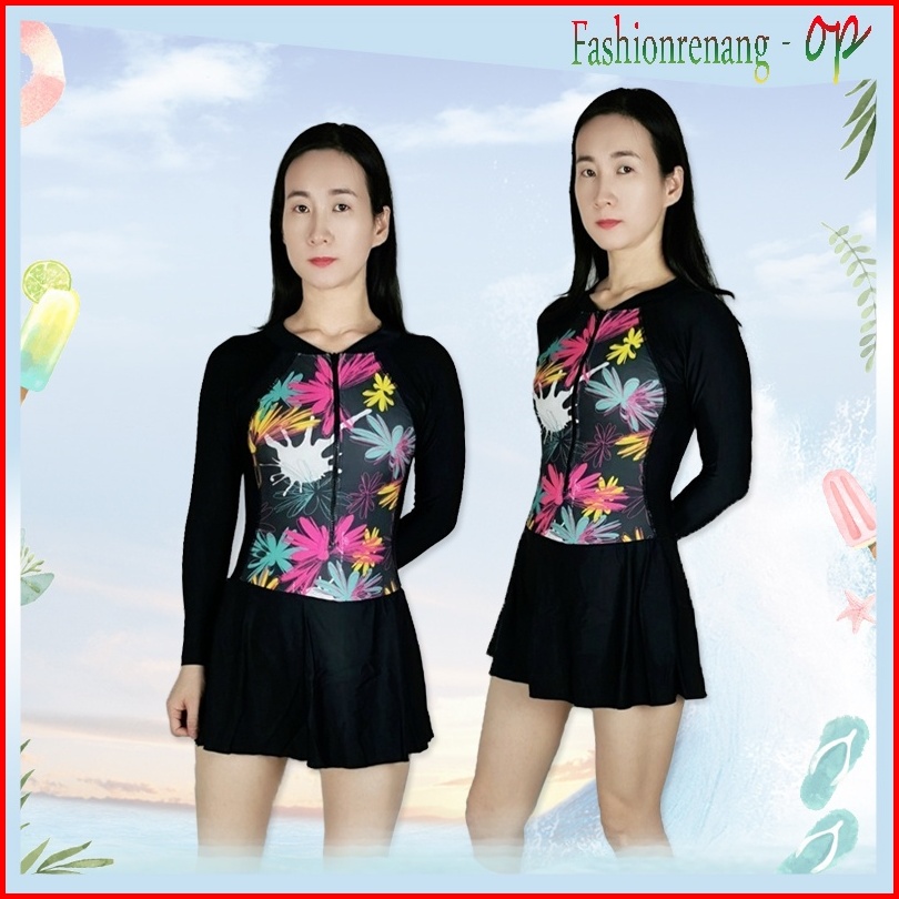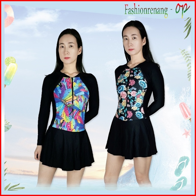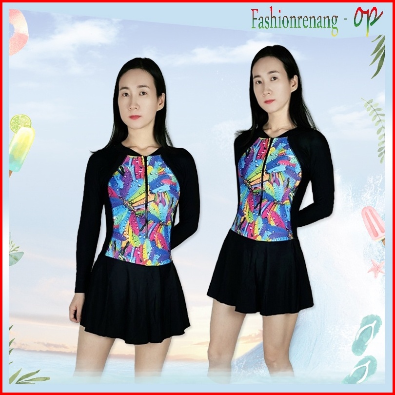 39066 Baju Renang Wanita Baju Renang Cewek Baju Renang Rok Baju Renang Lengan Panjang