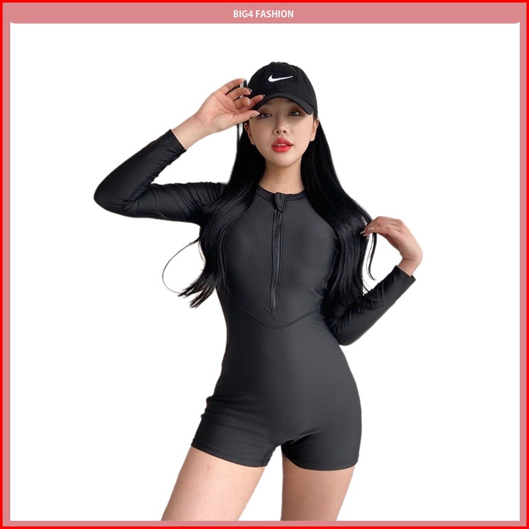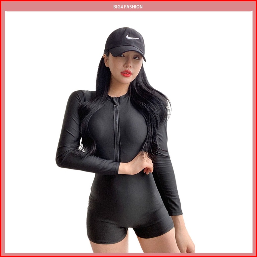 Baju Renang Diving Swimsuit Lengan Panjang Wanita Women One Piece Swimsuit High Waisted Swimwear