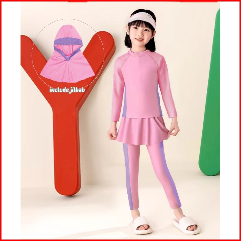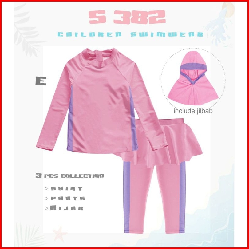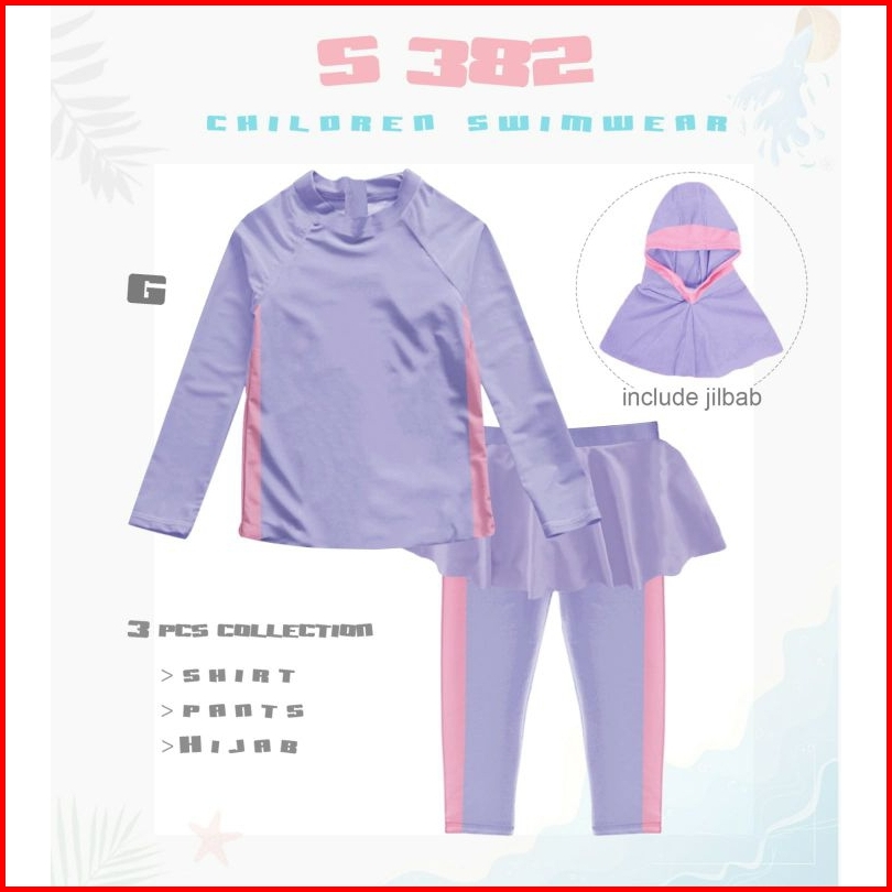 S382 Baju Renang Anak Muslim 2t-16t Baju Renang Anak Perempuan Baju Renang Hijab Baju Renang Import