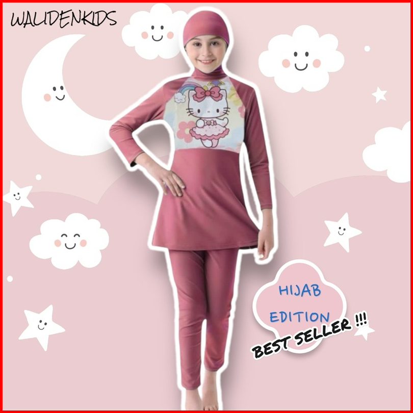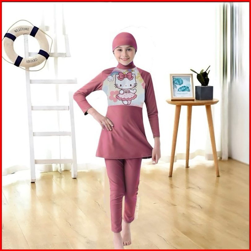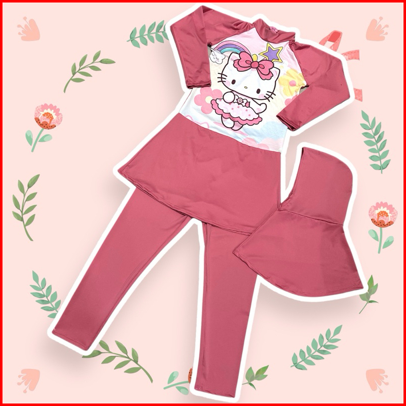 Baju Renang Anak Perempuan Muslim Hijab Muslimah Hello Kitty 1-12 Tahun