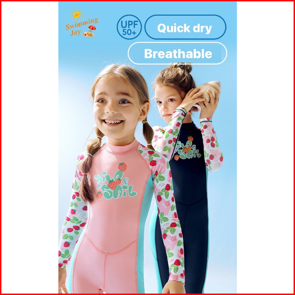 Swimming Joy - Baju Renang Jumpsuit Upf 50 Dive Sail Anak Cewek Strawberries Swimming Diving Suit Surfing Snorkeling Swi