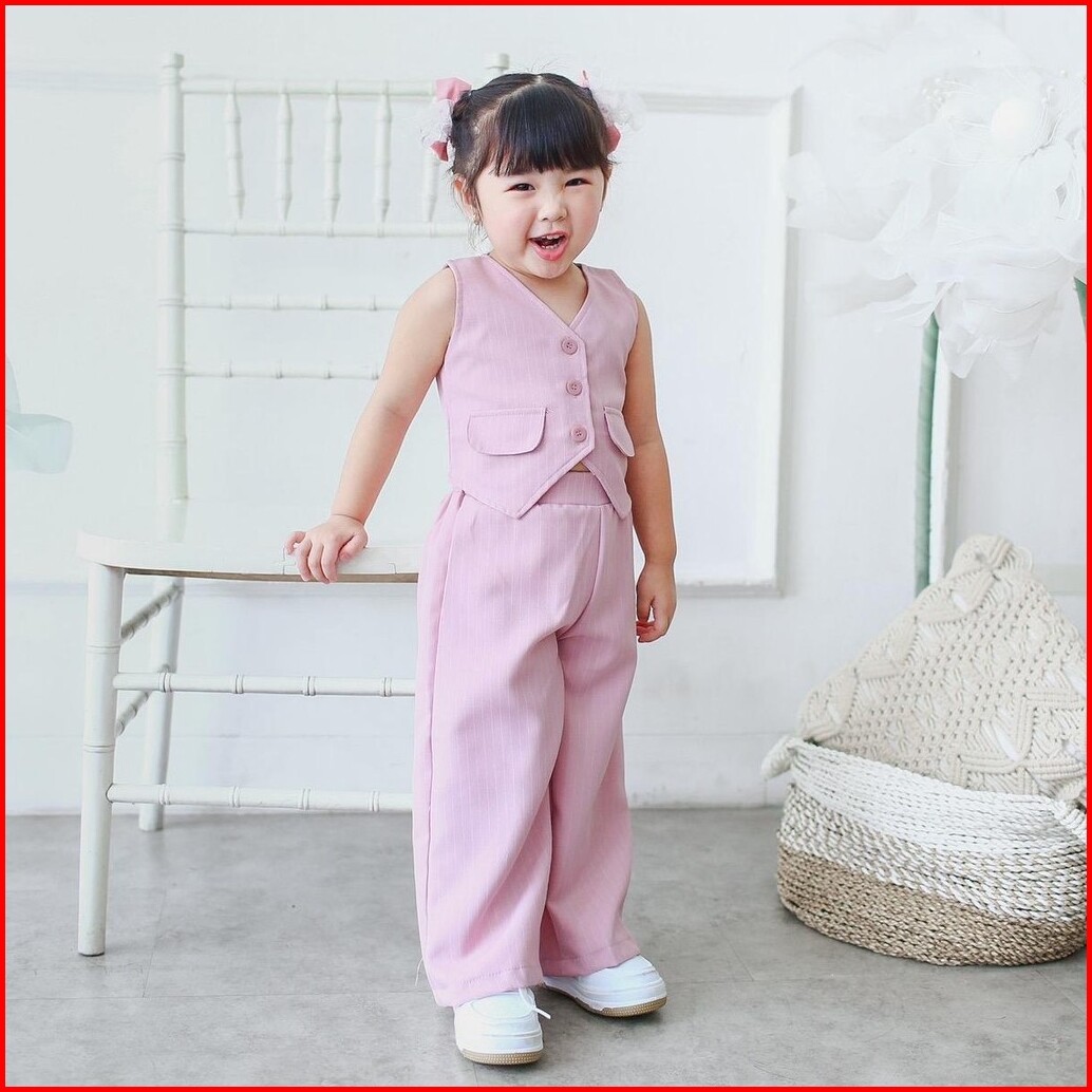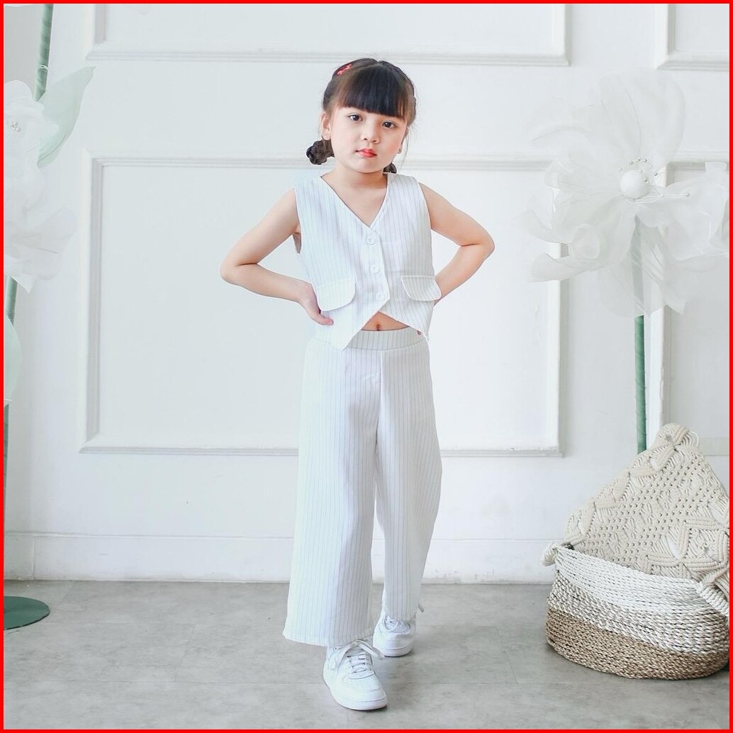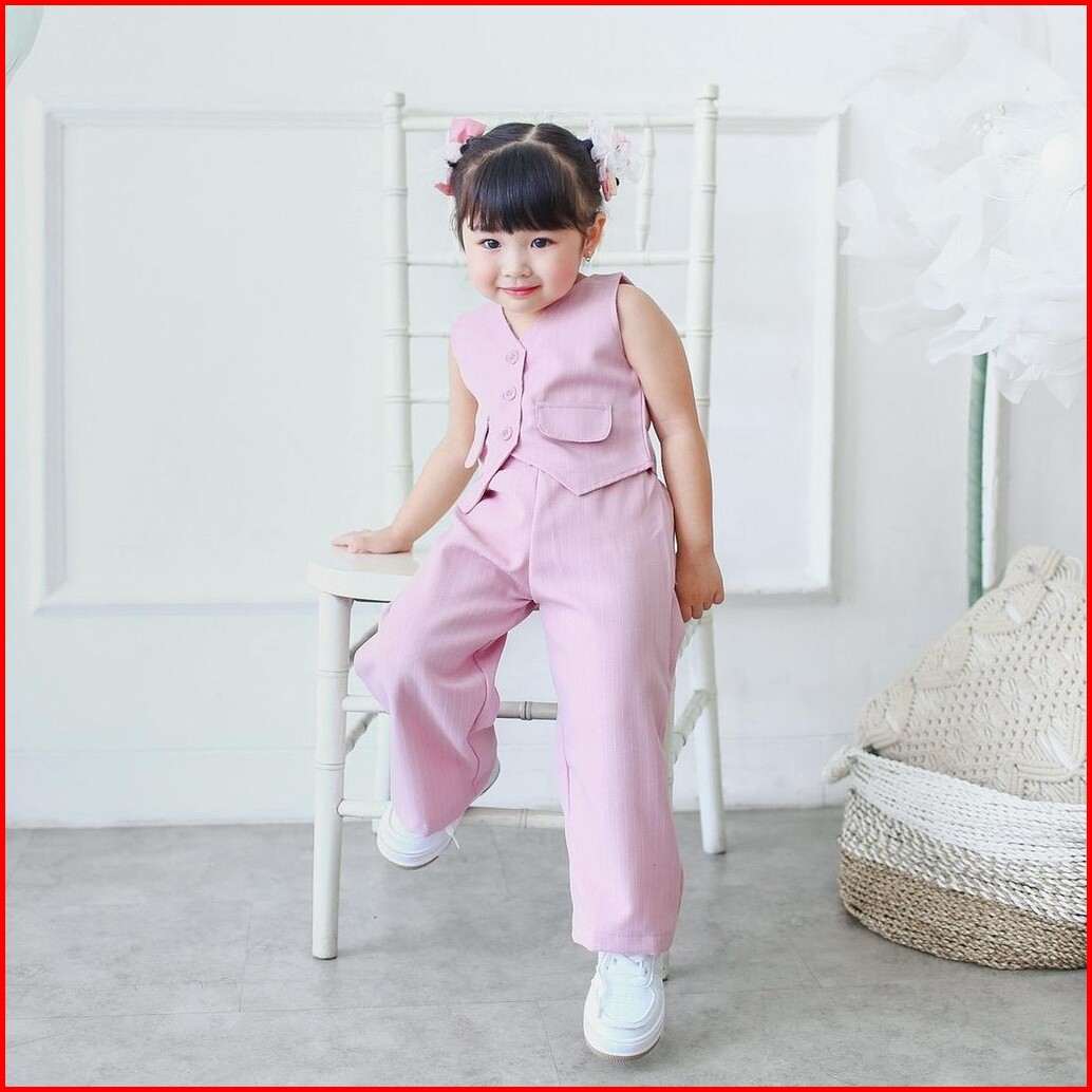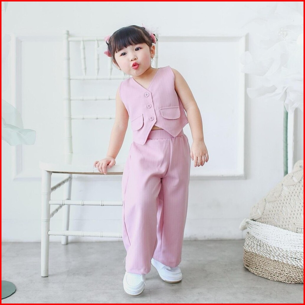 Celvekids - Stelan Valentina Set Baju Celana Anak Perempuan Korean Style Semiwool Usia 1-6th